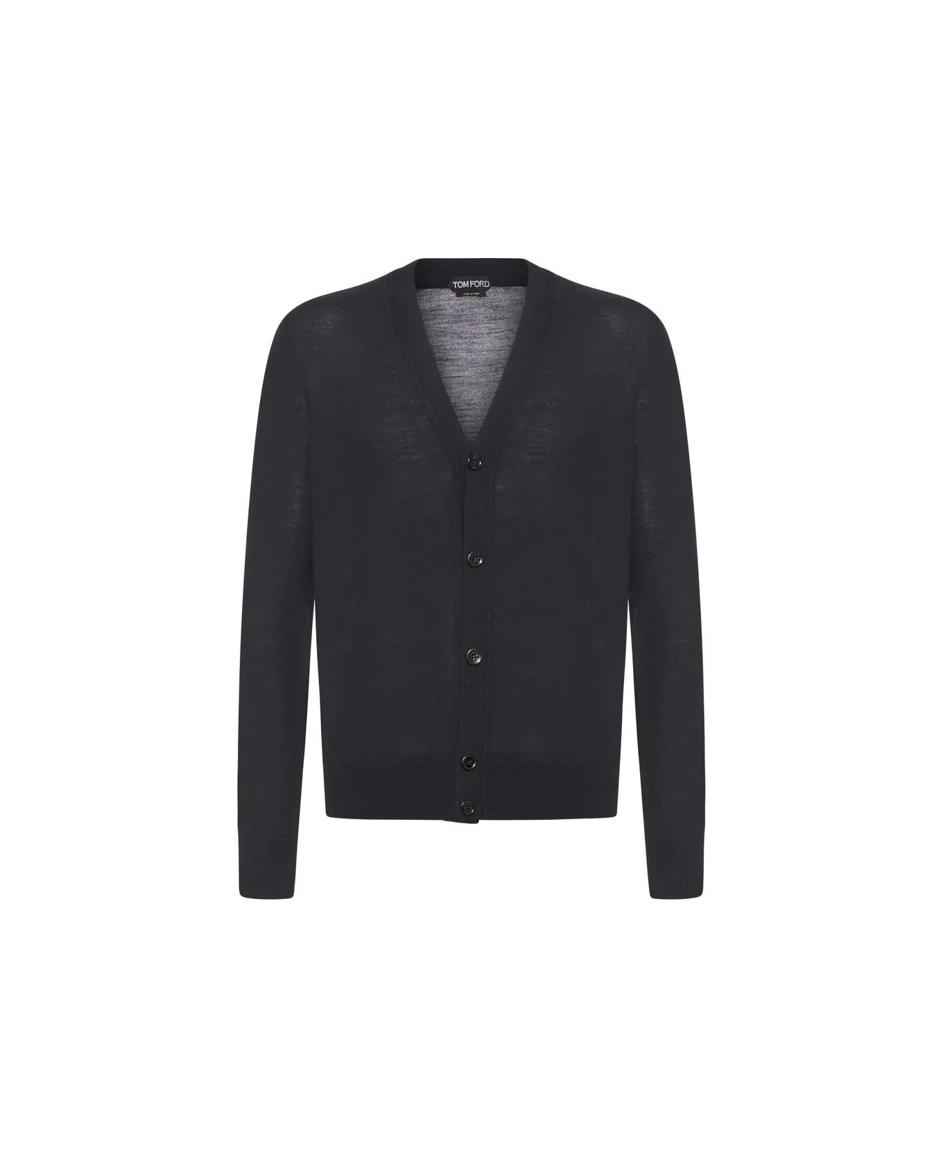 black front button fastening long sleeves ribbed trims ribbed cuffs V-neck Made in: Italy Color: BLACK Model number: YMW103KNL004
