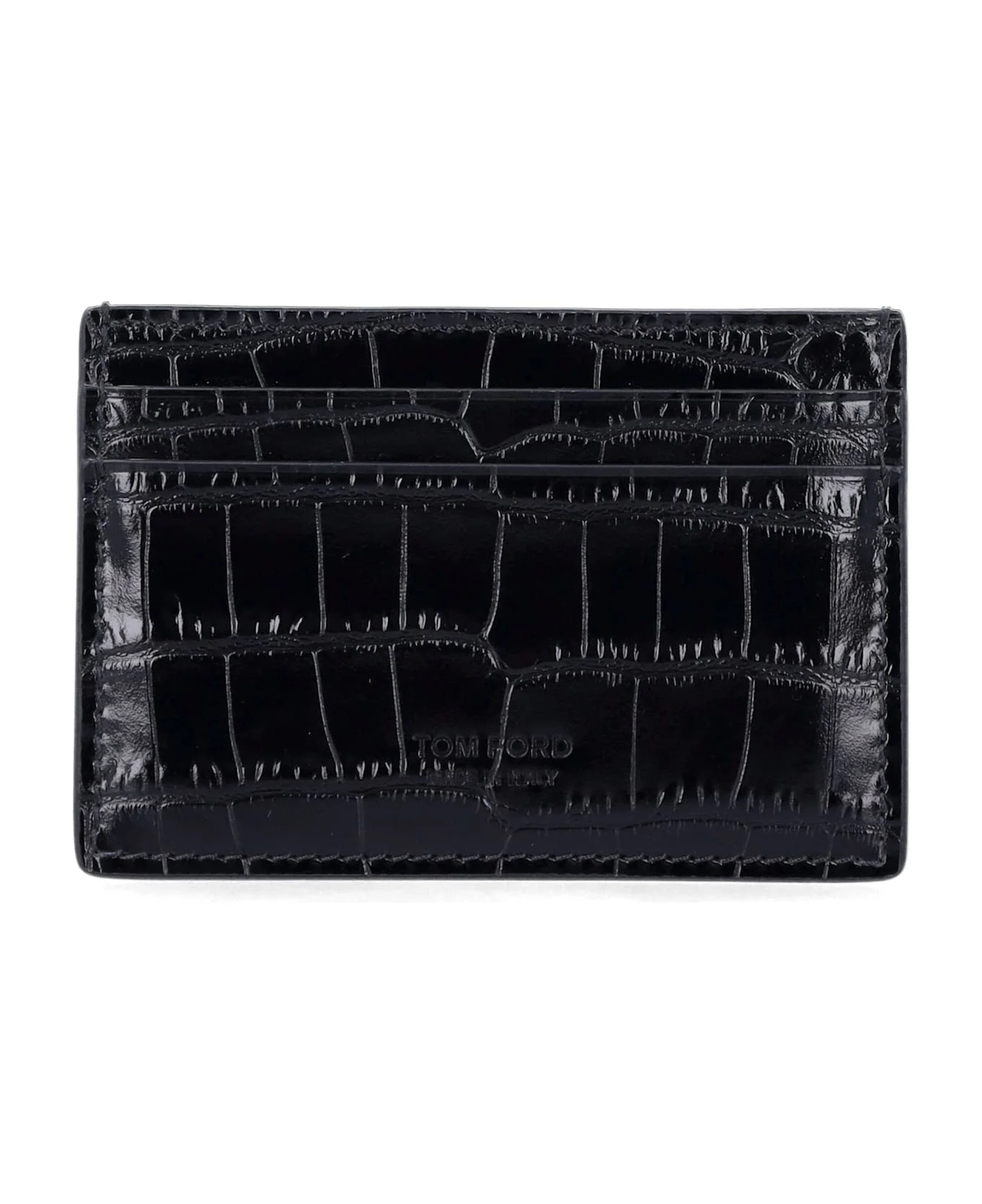 Designed In Sleek Crocodile-embossed Leather, This Tom Ford Cardholder Embodies Elegance In A Slim And Functional Form. Its Compact Size Makes It Perfect For Slipping Into Any Pocket, While The Refined Craftsmanship Ensures Durability And Timeless Appeal. A Luxury Essential For Everyday Use. Crocodile-embossed Leather Slim And Compact Silhouette Multiple Card Slots Tom Ford Logo Detail Height: 9 Cm Width: 12 Cm Composition: Upper, 100% calf leather Lining, 100% sheep leather Made in: Italy Color: BLACK Size and fit: - Height: 9 cm Width: 12 cm Model number: Y0413LCL439SNAA