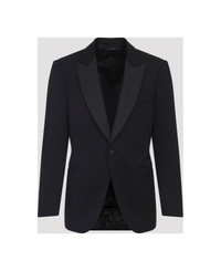 Tom Ford Tuxedo Black Wool Jacket. Crafted from black wool, tonal satin peak lapels, single-breasted construction, button fastening, welt pocket on the chest, two jetted pockets on the front, reinforced shoulders, buttons at the cuffs, two vents on the back, lined. Made in: Switzerland Color: Naa Black Model number: JEMPG1W0060NAA
