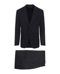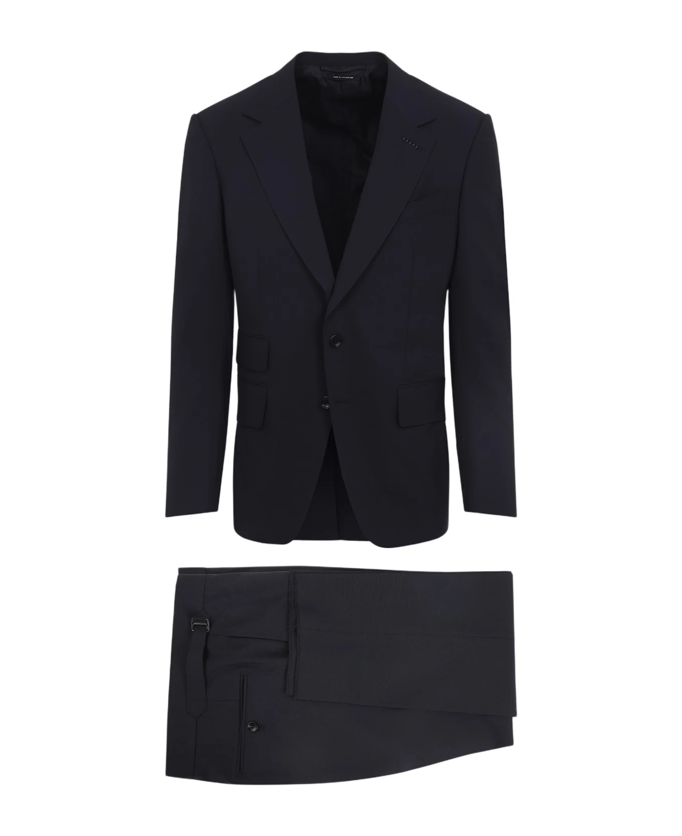 Tom Ford Blue Wool Suit. Crafted from blue wool, single-breasted jacket, notched lapels, reinforced shoulders, button fastening, welt pocket on the chest, three pockets on the front, long sleeves with buttons at the cuffs, back central slit. Tonal pants, with sliding tabs at the sides, slant pockets, front concealed fastening, back welt pockets, straight leg, unfinished hem ready for tailoring. Made in: Italy Color: Uca Ink Model number: 2LSN01WES01UCA
