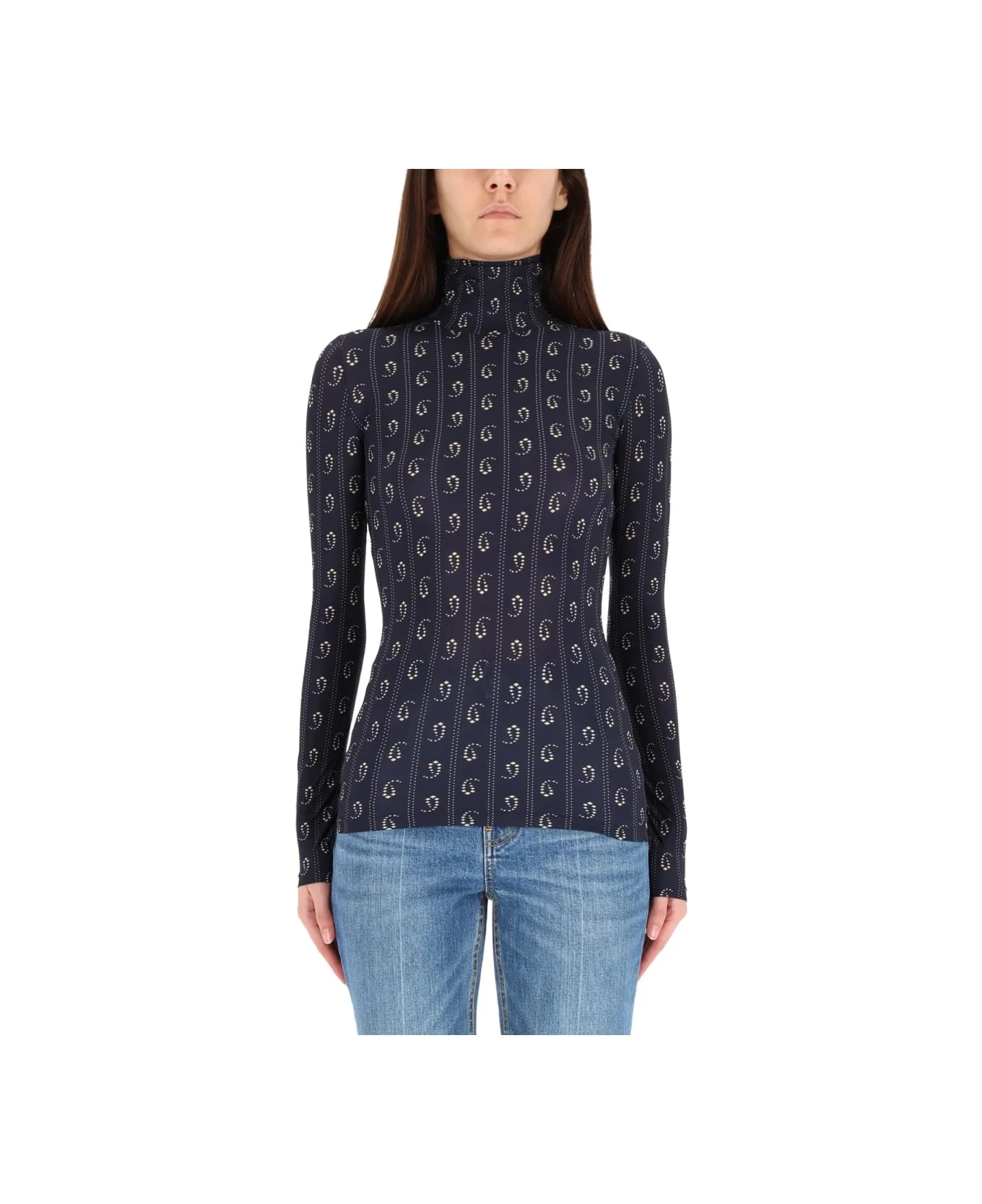 geometric-print turtleneck top