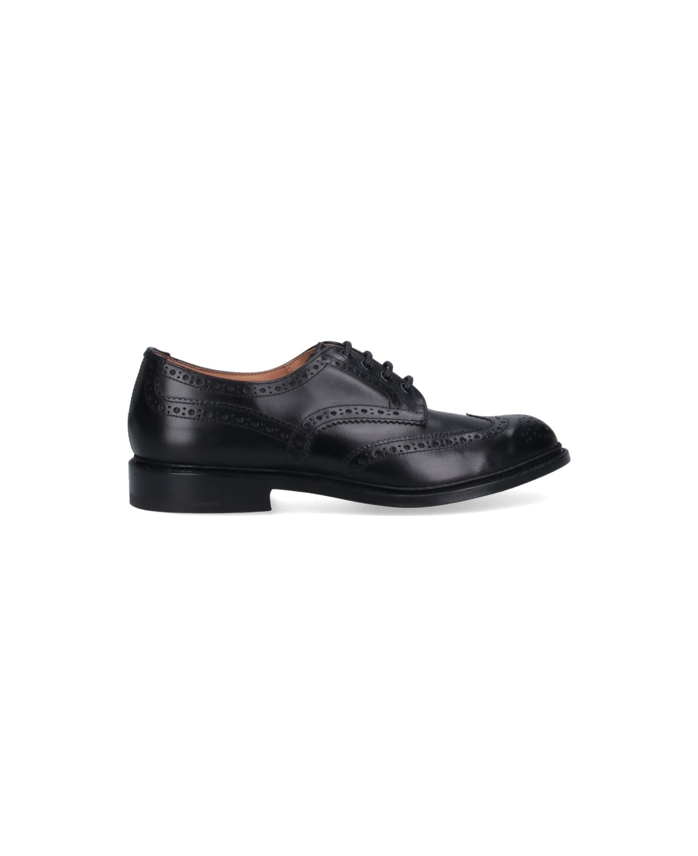 tricker's "Bourton Brogues" Derbies, blunt toe, decorative holes, laces closure, logo insole, wide low heel. Composition: 100% Leather Made in: United Kingdom Color: Black Model number: BOURTONBLACK
