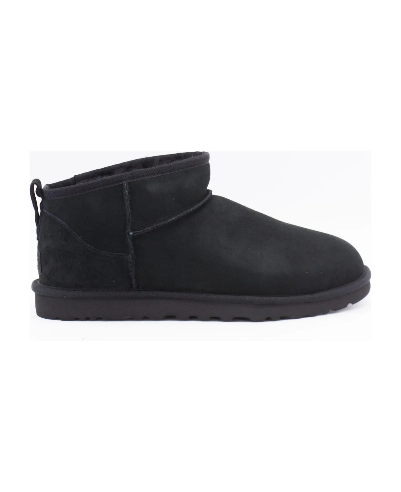 Black suede Ultra Mini boots from UGG featuring round toe, ankle lenght, slip-on style, overlock stitching and rubber sole. Composition: 80% Twinface, 20% Le Made in: Philippines Color: Black Model number: 1137391BLK