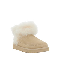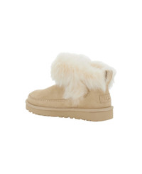 'classic Ultra Mini Chalet' Beige Ankle Boots With Fur Design In Suede Woman