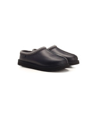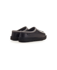 'Tasman' shoe in bonded leather UGGplush lining UGGplush insole Sugarcane EVA outsole Fabric trim Heat-embossed UGG® logo Composition: 81% Leather, 19% Textile 52. 94% Wool, 35. 3% Tencel [Lyocell], 11. 76% UNIFI REPREVE Recycled Polyester Made in: Vietnam Color: BLACK Size and fit: - 3 Model number: 1163890BLK
