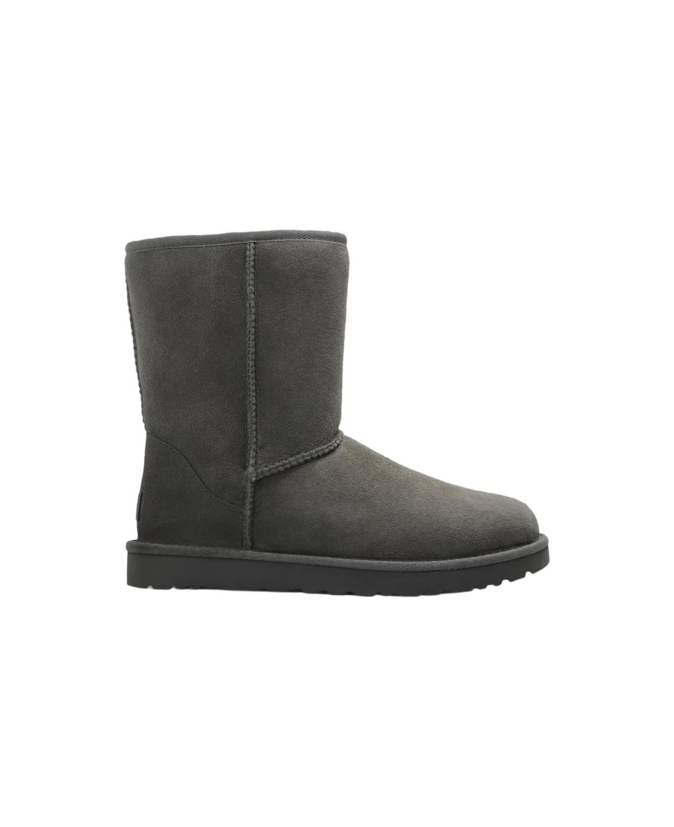 Grey 'Classic Short' snow boots from UGG. Crafted from suede, this pair features a brown logo patch at the back, recycled wool blend UGGplush lining in cream and grey rubber sole. Composition: Outer Layer: Suede Inner Layer: 80% Wool 20% Lyocell Sole: Rubber Color: Grey Grey Size and fit: - Sole height: 2cm - Sole height at the highest point: 3cm Model number: 1016223GREY