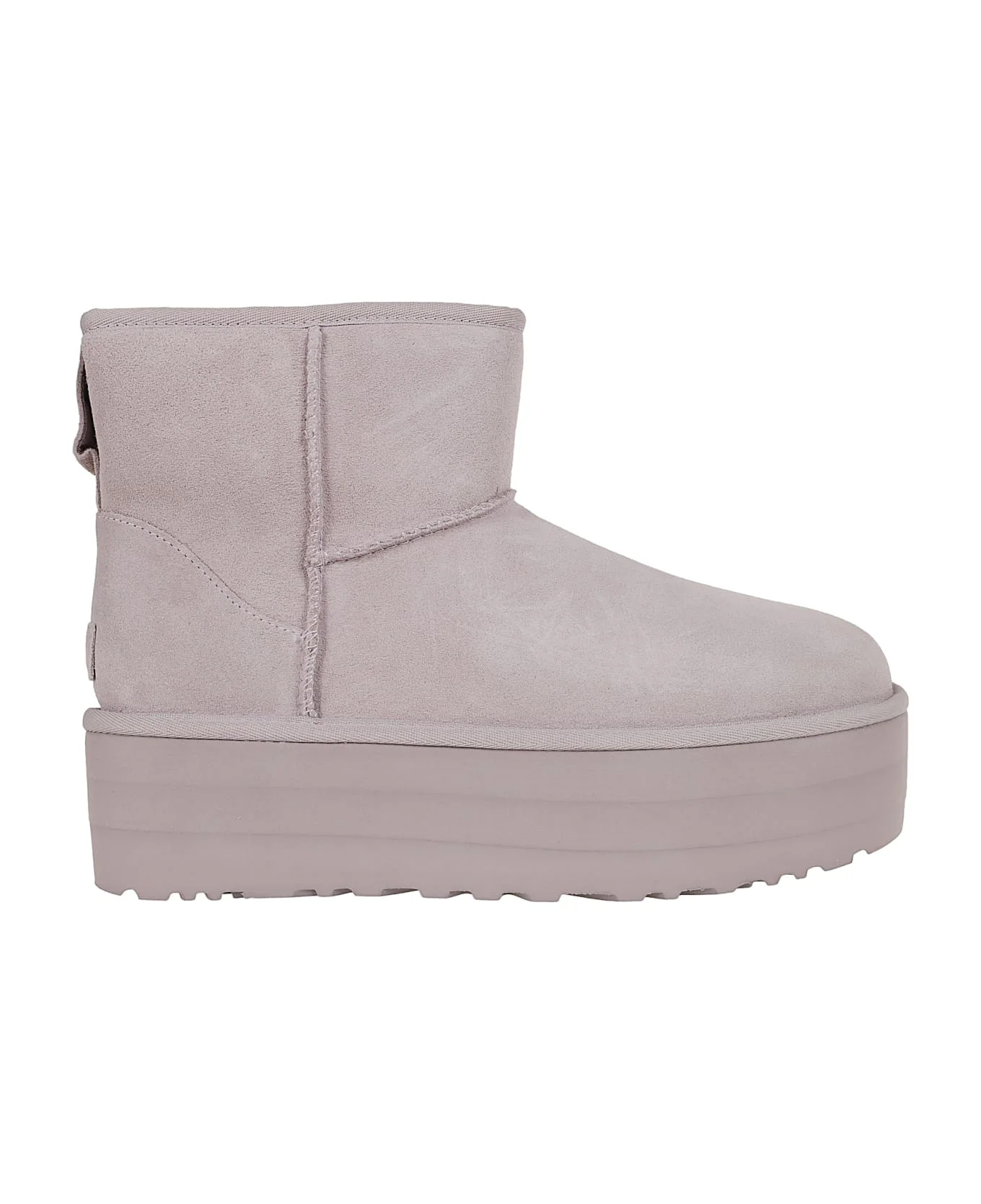 Classic Mini Platform in suede BY UGG. SugarSole outsole made with a responsible compound based on sugar cane foam, which allows us to reduce our dependence on fossil fuels by replacing petroleum-based ethylene, or on a Treadlite by UGG outsole. Upper height 12. 70cm Made in: China Color: Psk Pale Smoke Size and fit: - Heel 5 cm Model number: 1134991PSK