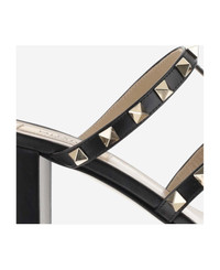 Valentino Garavani Rockstud sandals made from calfskin Open-toe Rockstud studs with platinum finish Wide covered heel Heel height: 6 cm Black Made in Italy Composition: 100% calf leather Made in: Italy Color: Black Size and fit: - Heel 2,4 in / 6 cm Model number: WS0C47VOD0NO