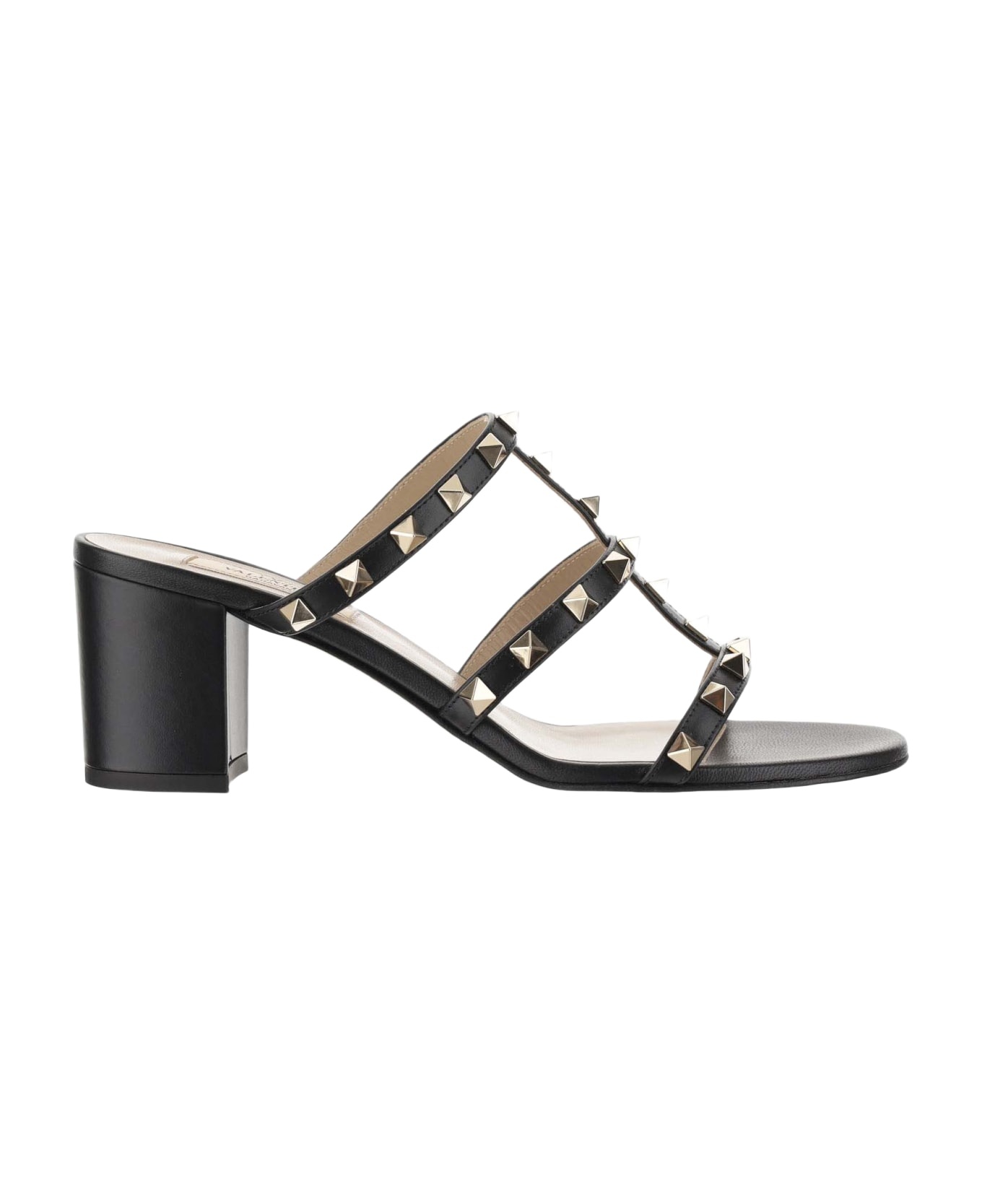 ROCKSTUD CALFSKIN LEATHER SLIDE SANDAL 60 MM