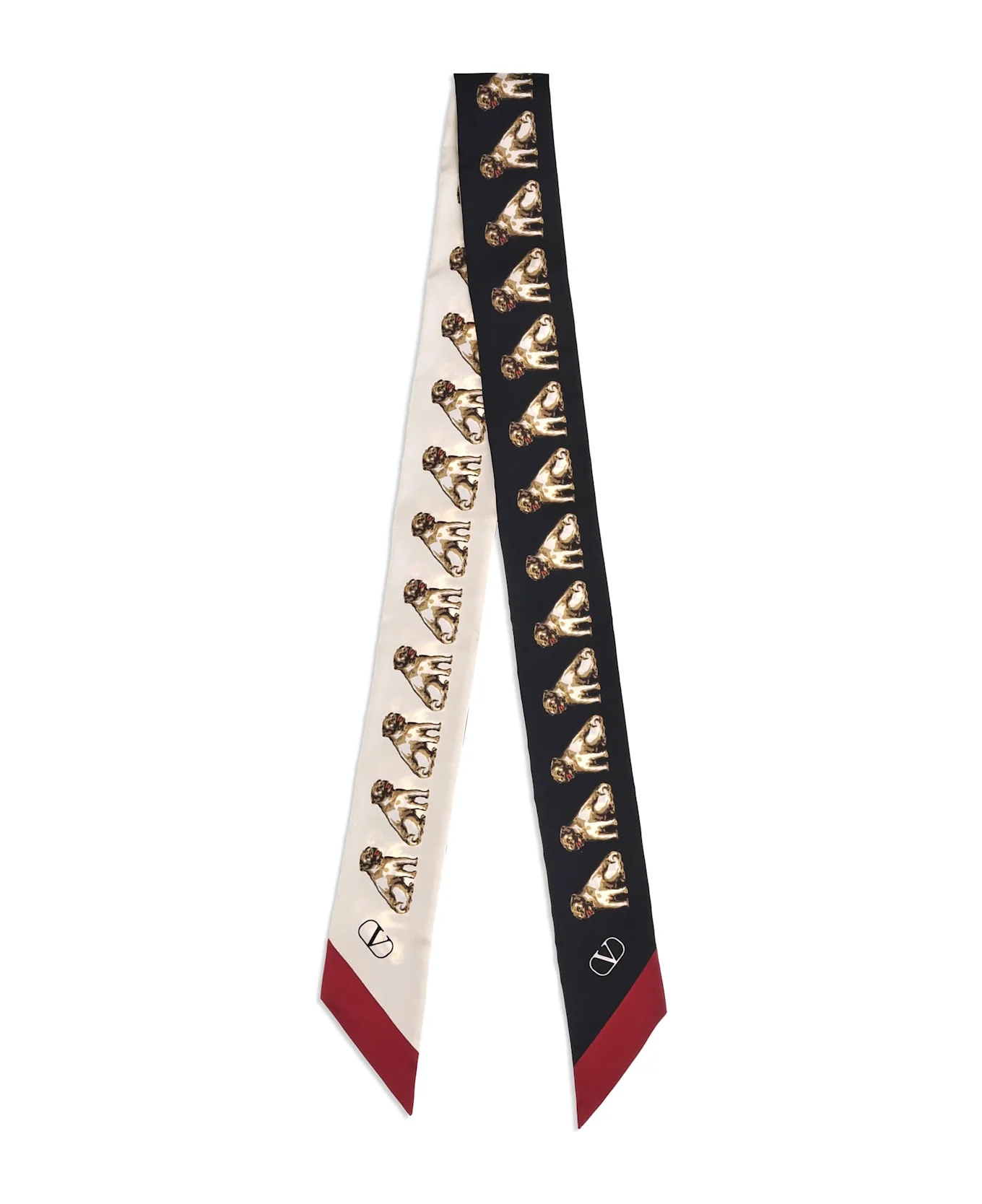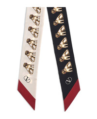 The bandeaux silk dog print scarf by valentino garavani, an accessory that combines elegance and playful spirit. made of fine silk, this scarf is distinguished by a vibrant print depicting cute dogs and the iconic contrasting vlogo, the distinctive signature of the fashion house. perfect to wear around the neck, in the hair or as a detail on a bag, it adds style and personality to any look. Composition: 100% % Silk Made in: Italy Color: Black Model number: WE6017UQWCEV