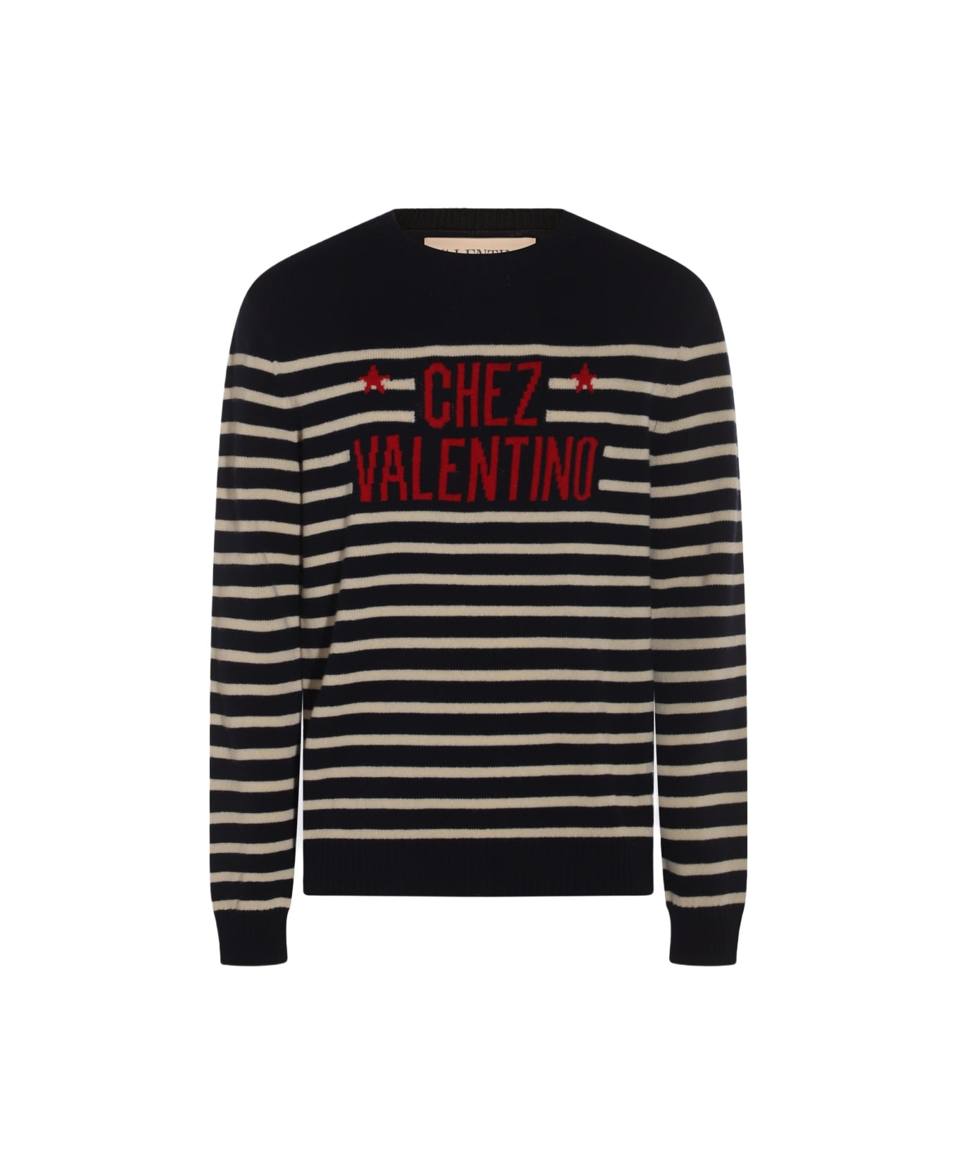 Logo-Intarsia Striped Virgin Wool Sweater Navy
