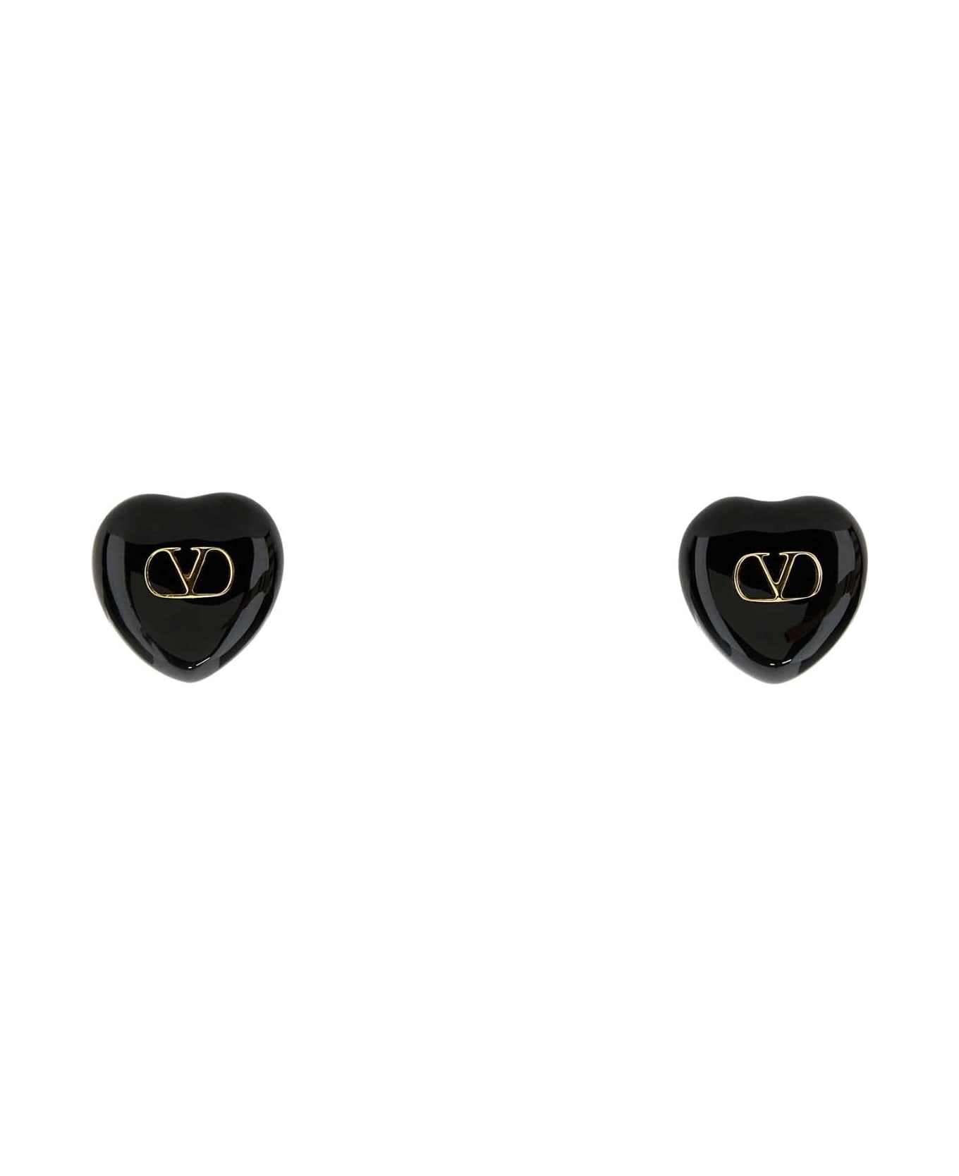 Black Enamel And Metal Coeur Royal Earrings