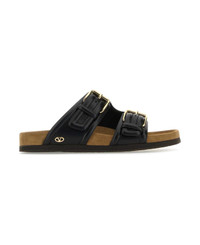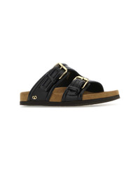 Black Leather Fussfriend Slippers