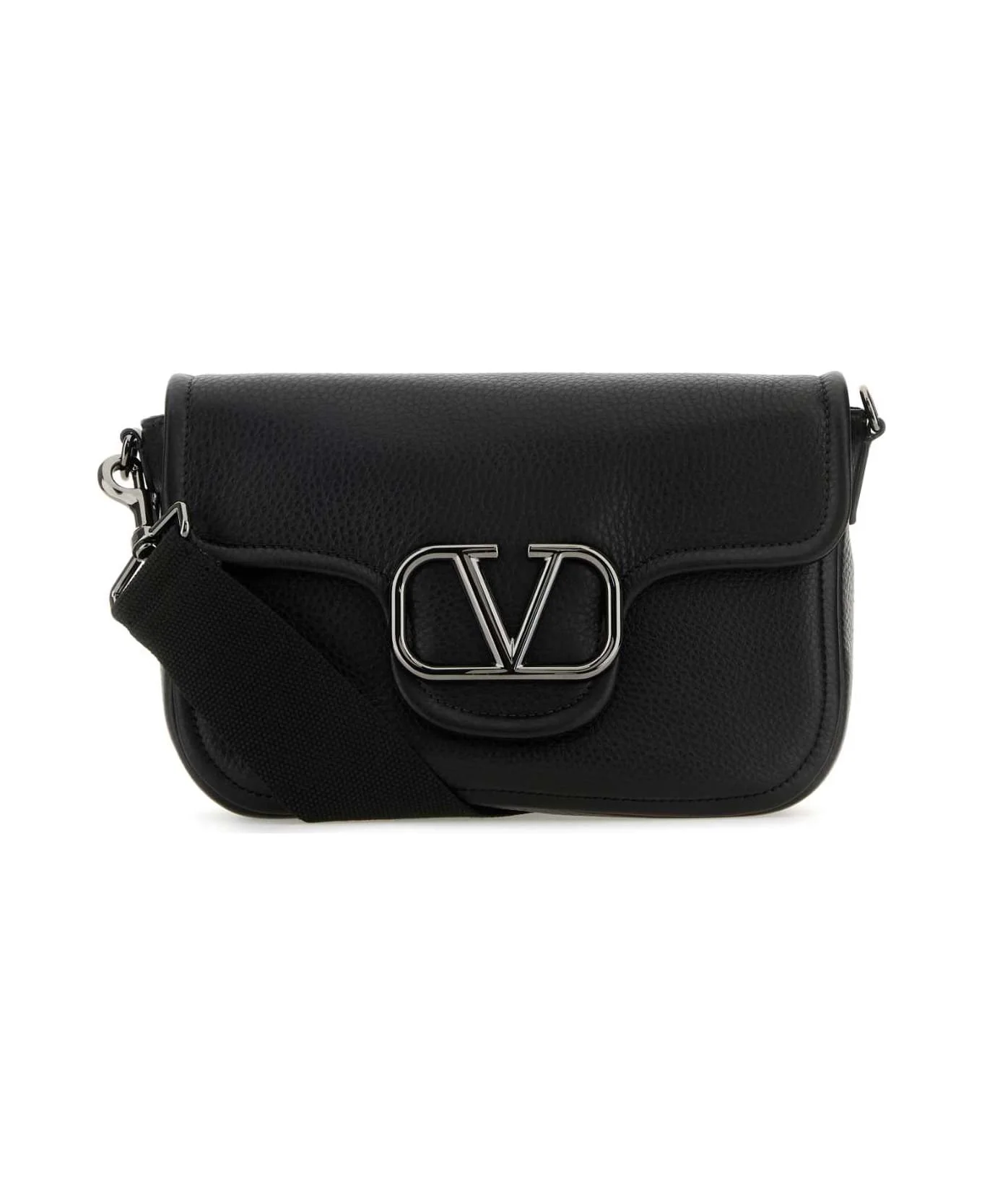Black Leather Vlogo Crossbody Bag
