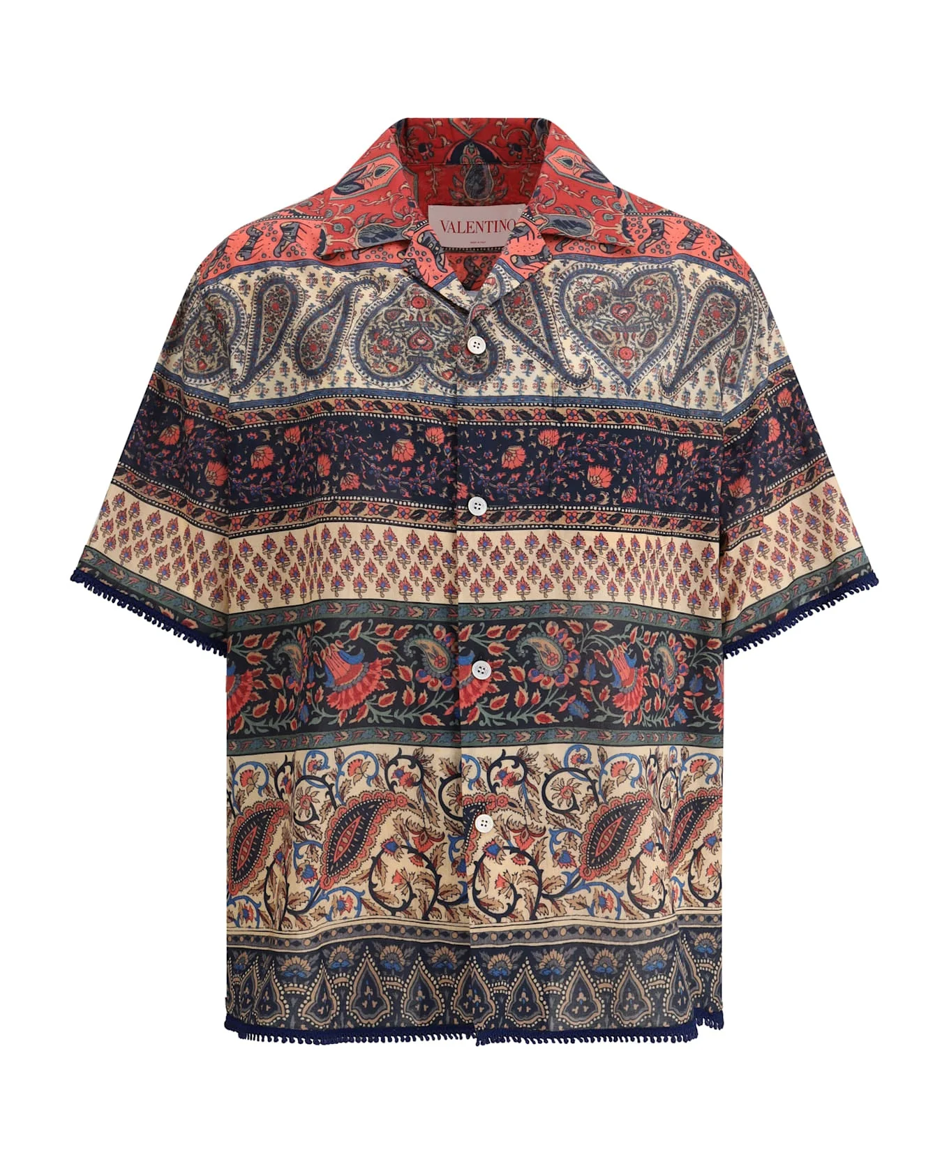BOWLING SHIRT IN COTTON MUSLIN WITH VOYAGE IMAGINAIRE PRINT AND PASSEMENTERIE TRIMS