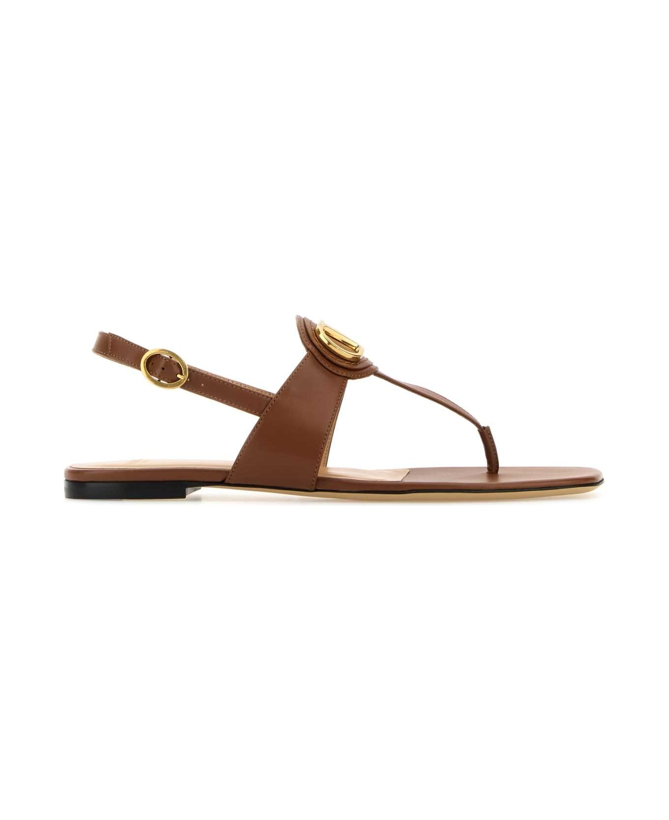 Brown Leather Vlogo Thong Sandals