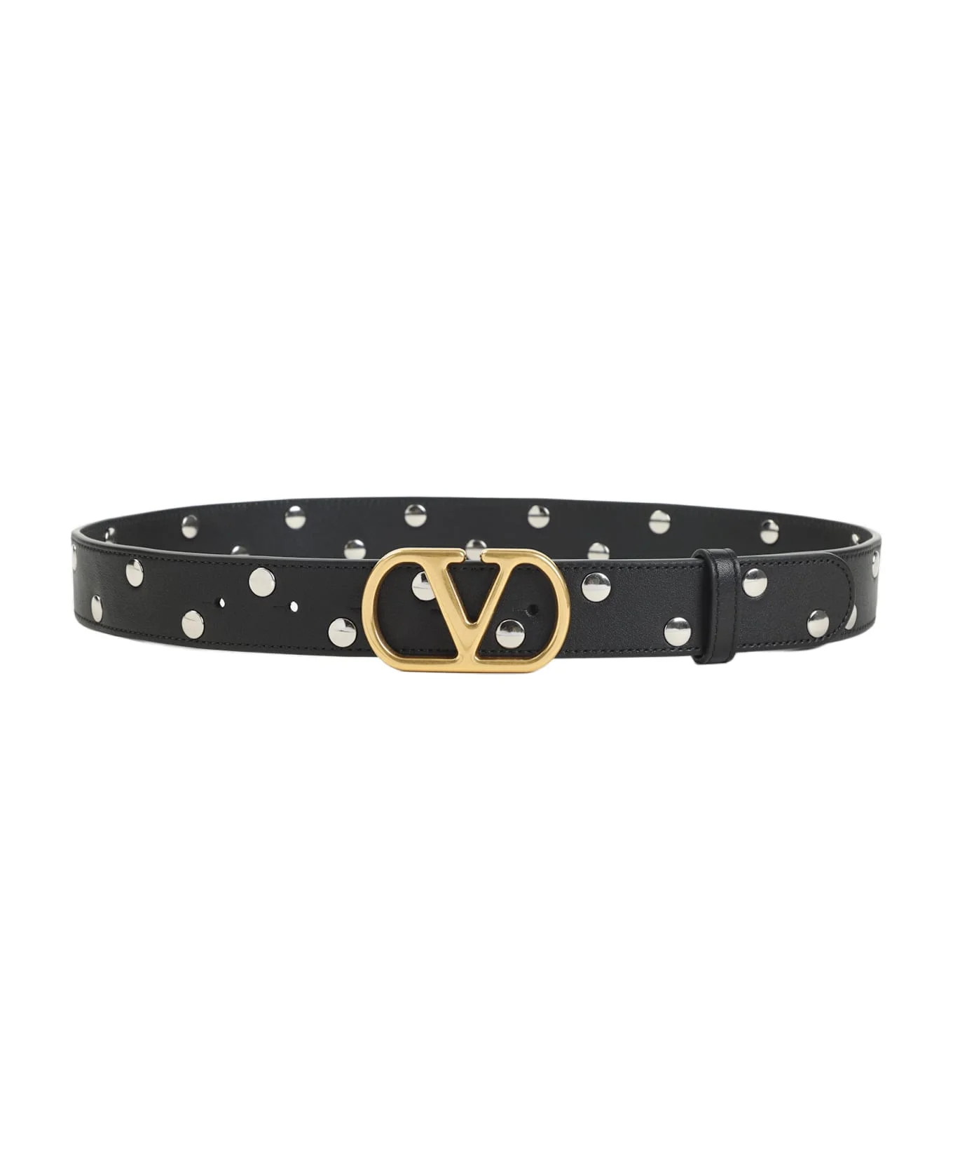 Valentino Garavani Buckle Black Calf Leather Belt. Crafted from black calf leather, silver-toned studs throughout, gold-finish V-logo buckle, leather belt loop, adjustable fit. Made in: Italy Color: No Nero Size and fit: - H: 3cm Model number: 7W0T0ST9MLX0NO