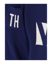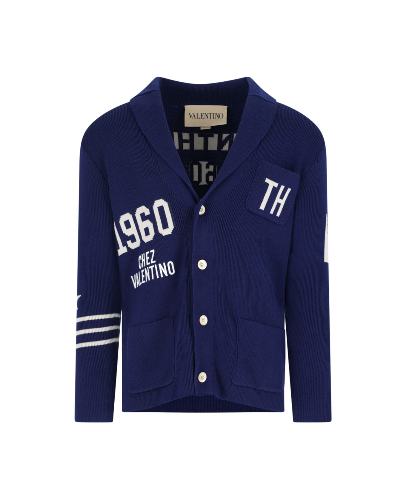 Valentino Garavani 'Chez Valentino' blue wool cardigan knitted, collar, button closure, Jacquard pattern on the front and back, two flat front pockets, straight hem. Composition: 100% Wool Made in: Italy Size and fit: - Vestibilita regolare Model number: VKA05NB2GCMV