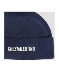 Navy 'Chez Valentino' Knitted Wool Beanie