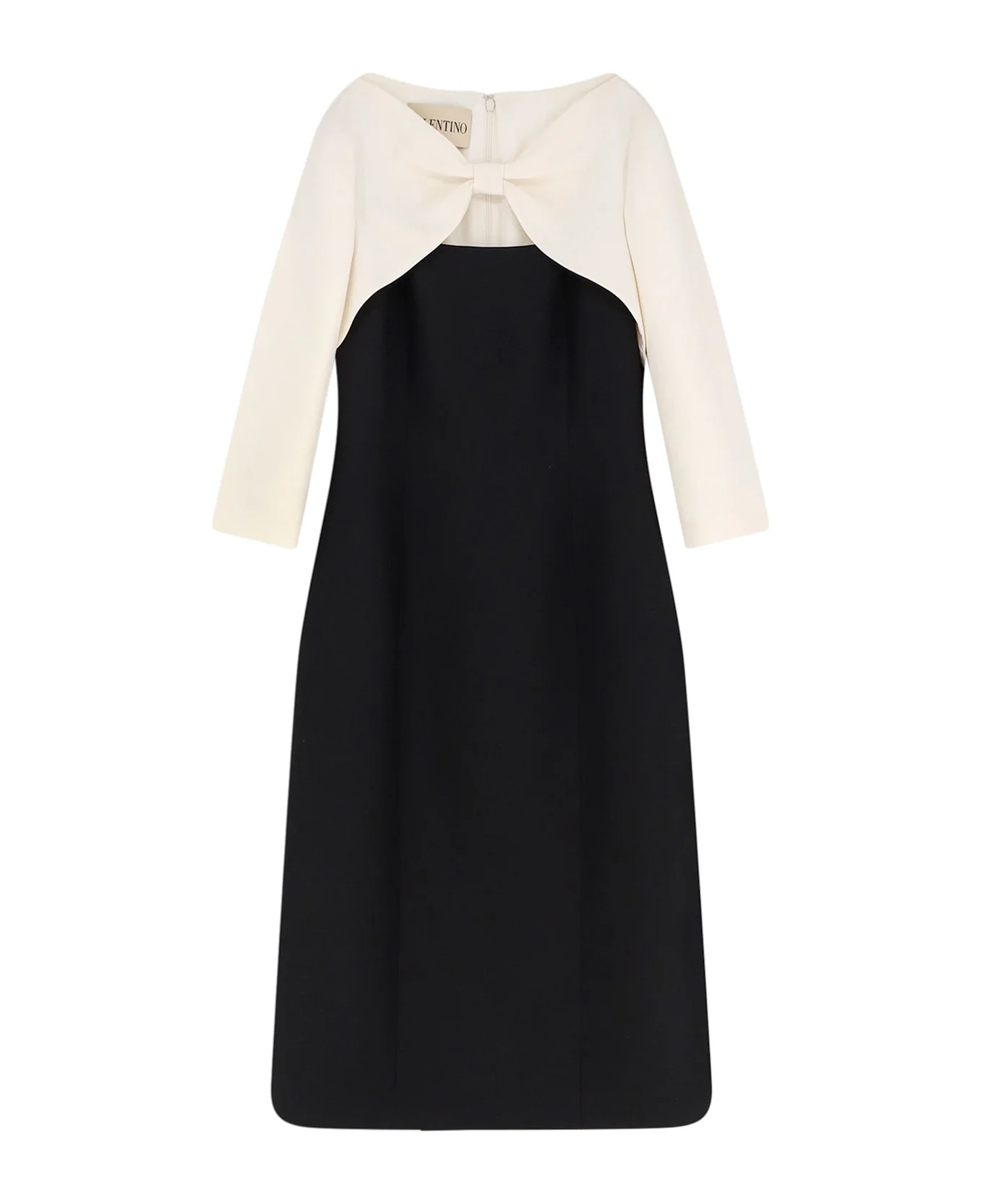 Zip closure on the back Contrasting top with knot detail Long sleeves Lined Side welt pockets Made in Italy 65% virgin wool 35% silk Lining: 100% silk SKU: 8B3VAJR01CF0NA Made in: Italy Color: NERO AVORIO Model number: 8B3VAJR01CF0NA