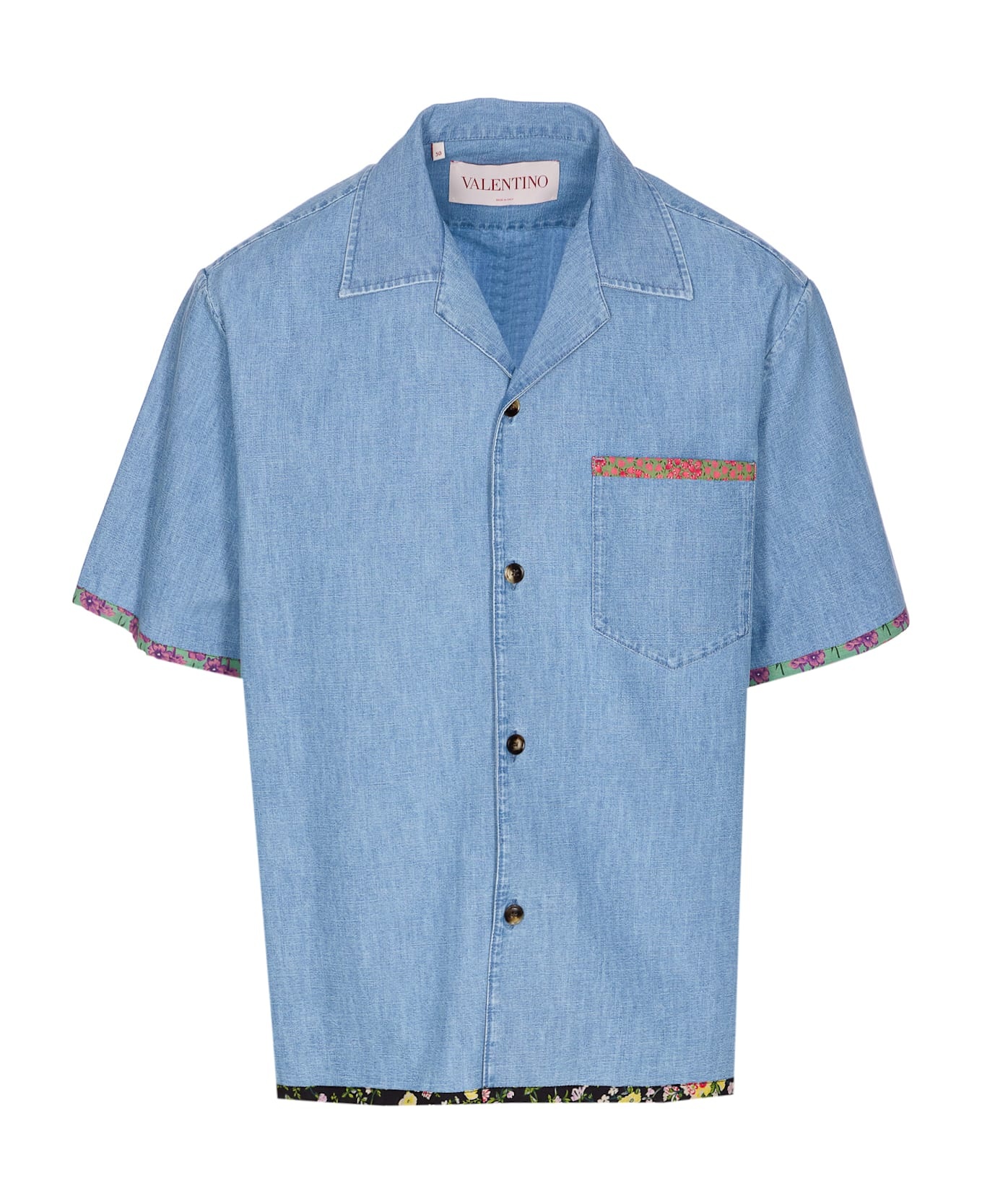 Valentino denim shirt with frontal buttons closure, regular colalr, long sleeves, pocket on the front Composition: 100% Cotton Made in: Italy Color: Blue Size and fit: - EU SIZE (IT) Model number: DB04LALM508