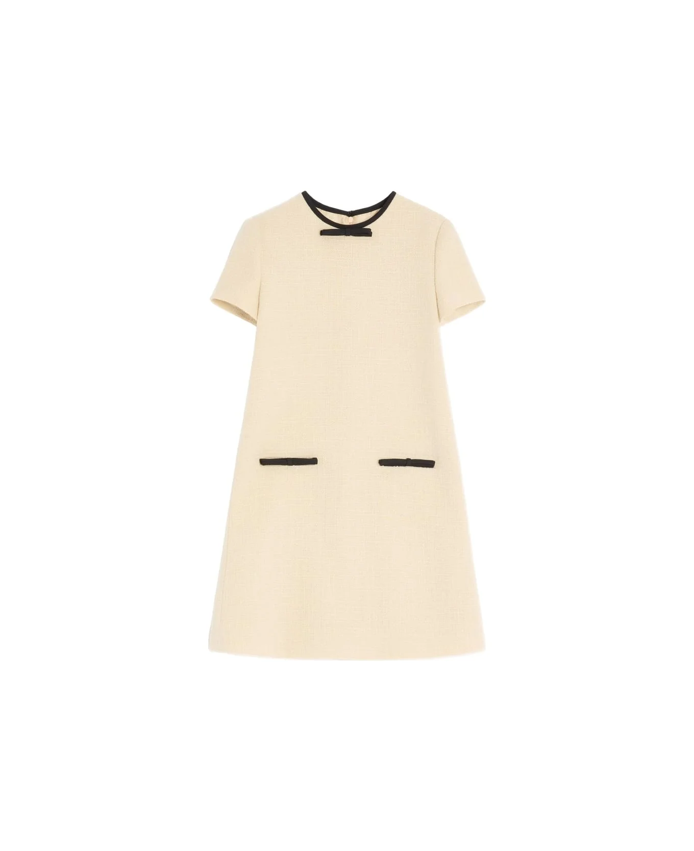 ivory wool tweed short sleeves bow neckline black contrast trim front pockets Made in: Italy Color: NEUTRALS Model number: 7B0VAH5090YDNG