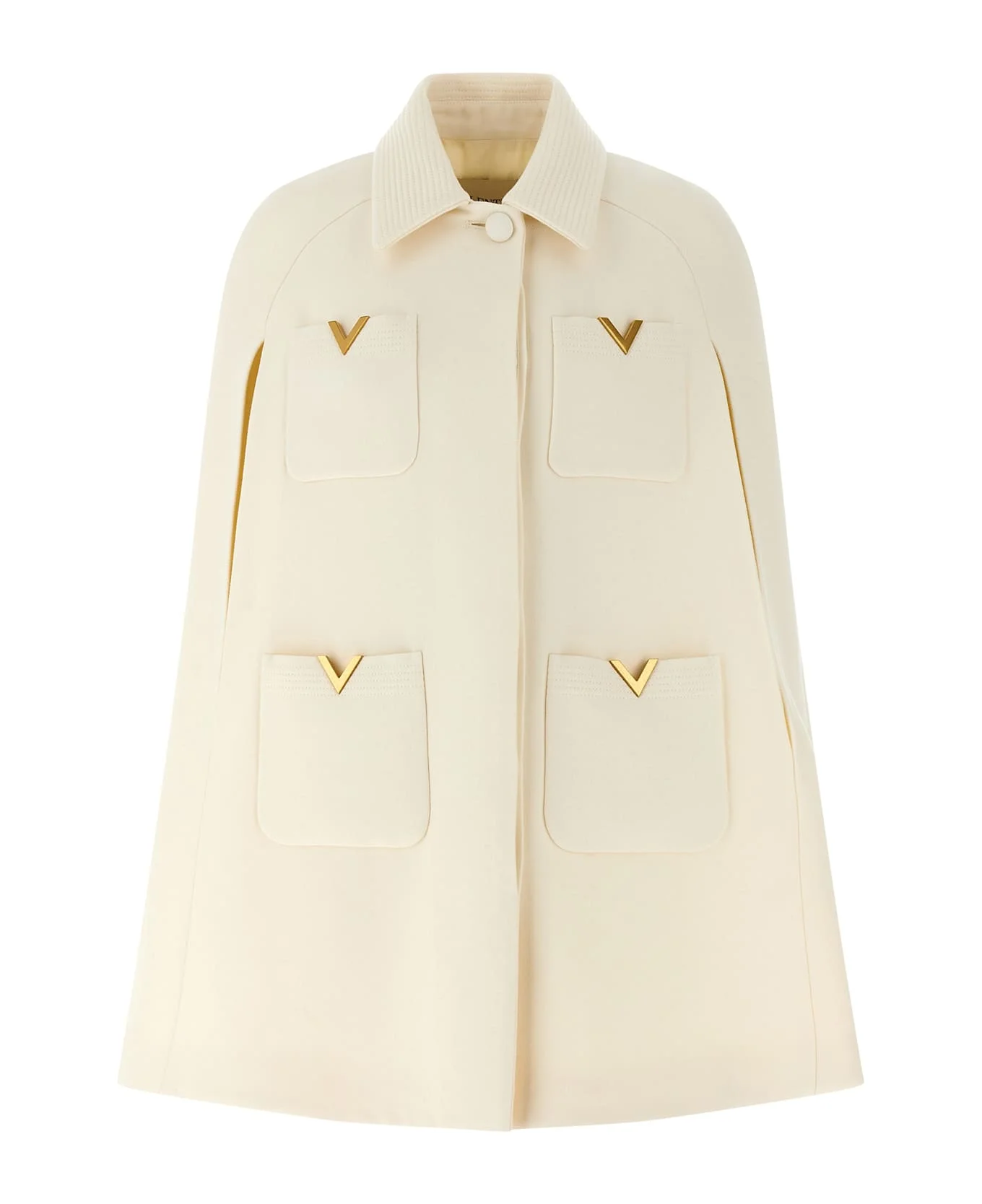 Double drill cape, collar, velvet-covered front button, front button closure, pockets, sleeve openings, Vgold logo detail. Composition: 99% virgin wool 1% silk Made in: Italy Color: White Size and fit: - True to size fit Model number: B3CG4T55KJA03