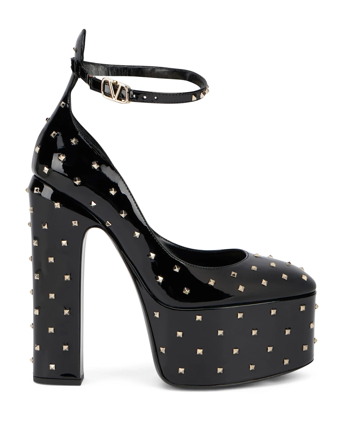 VALENTINO GARAVANI TAN-GO PATENT LEATHER PLATFORM PUMP WITH MICRO STUDS 155MM