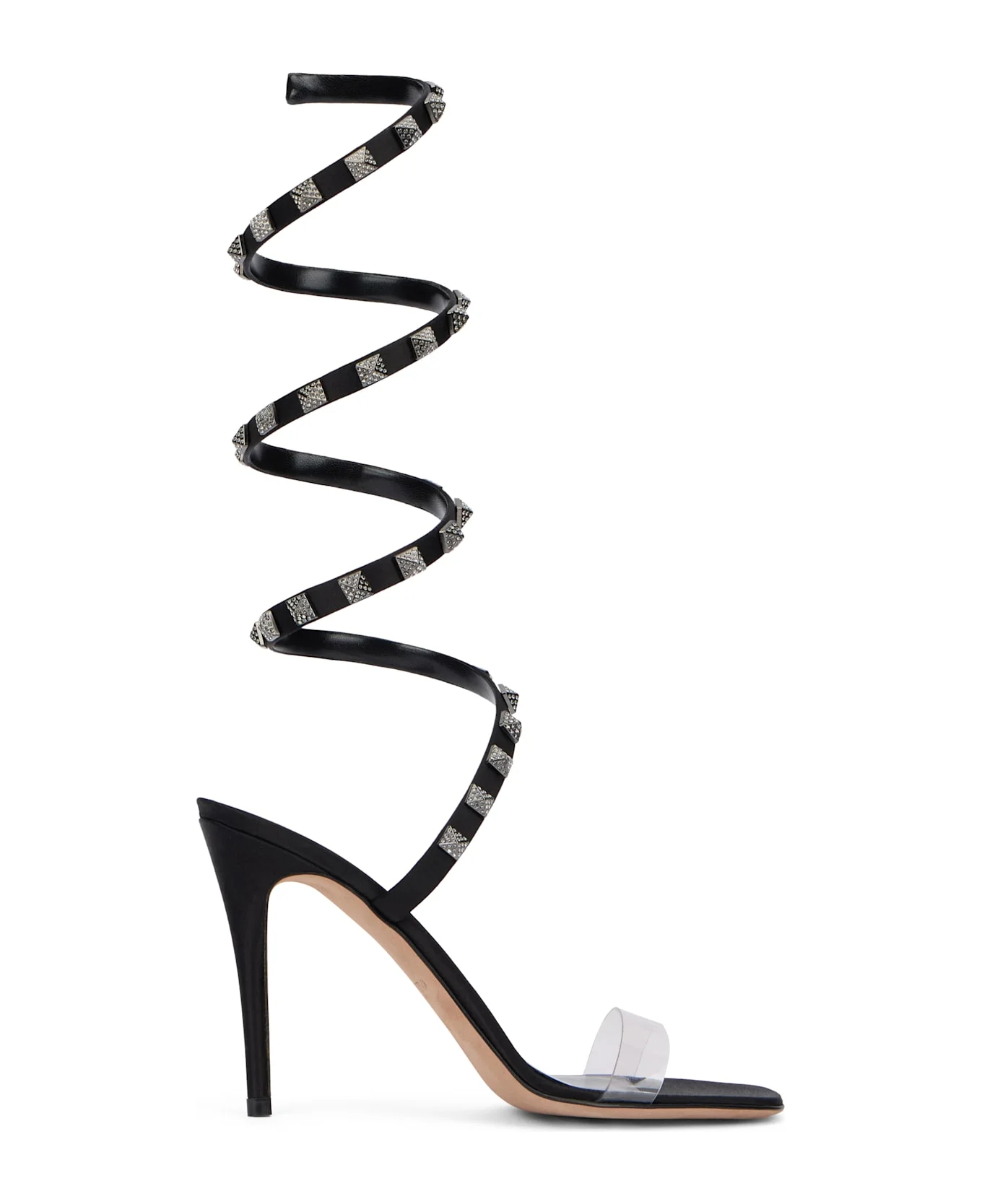 Elegant sandal with high heel, characterized by a thin strap that wraps in a zigzag manner around the ankle. the shoe features an open toe and a contrasting sole, giving it a sophisticated and modern look. made from high-quality material, this sandal is ideal for special occasions and elegant evenings, adding a touch of style and femininity to your outfit. available in black, versatile and easily combinable with various looks. 100% pvc, 100% lambskin le Composition: 100% % Pvc, 100% % Lambskin Le Made in: Italy Color: black Model number: 2W2S0GJ4INIV6S