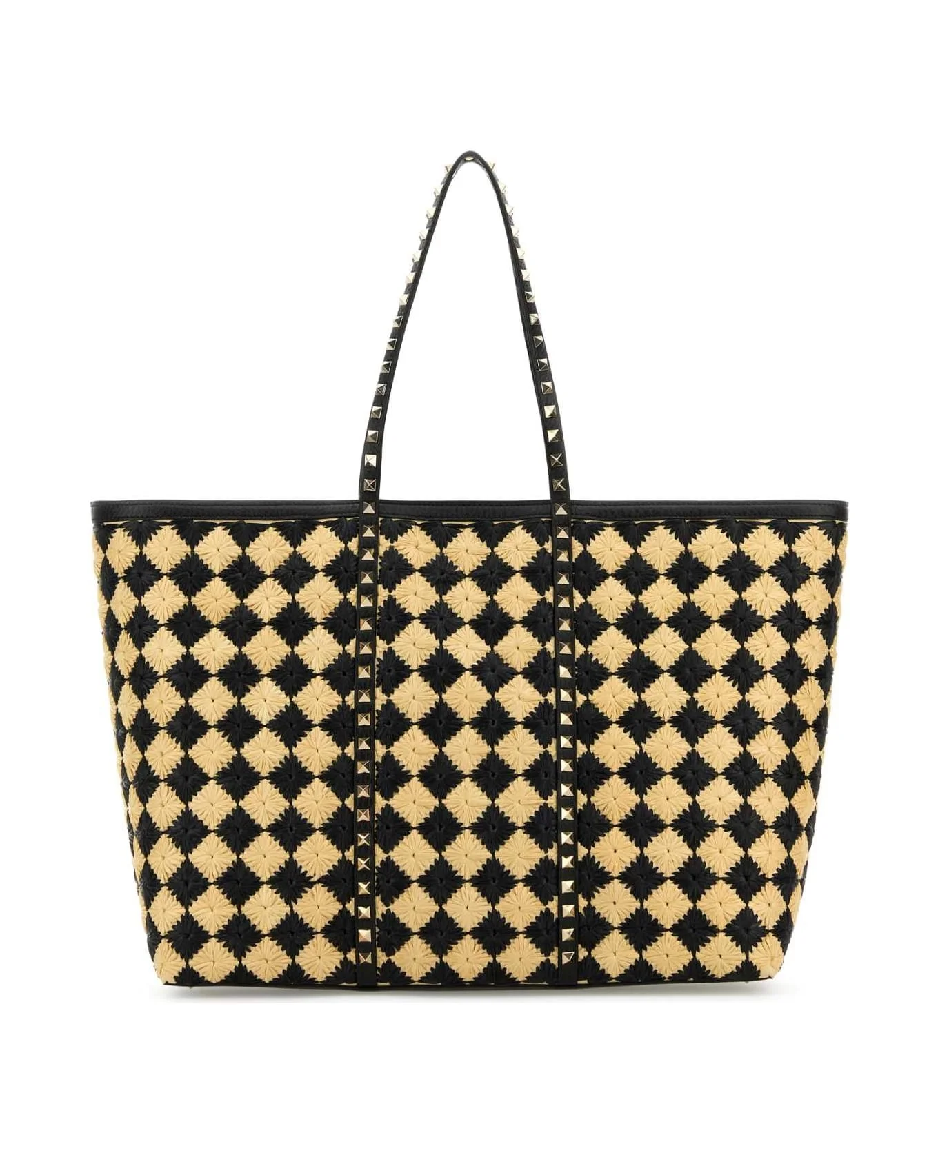 VALENTINO GARAVANI ROCKSTUD EMBROIDERED SHOPPING BAG IN SYNTHETIC RAFFIA