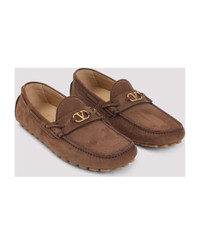 Valentino Garavani Dark Brown Leather Fastaway Driver Lace-Up Shoes. Pure dark brown leather loafers, squared toe, top tonal strap, top gold-tone metallic signature V logo, slip-on style, side tonal leather strap, beige rubber sole, flat design. Made in: Italy Color: Bark Brown Model number: 7Y2S0K98AAH7N9