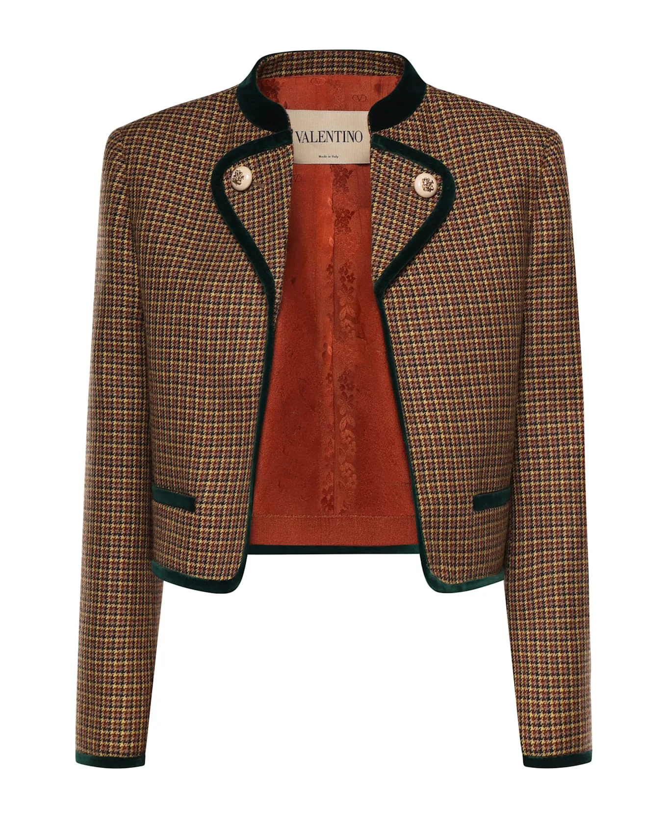 Cropped Velvet-trimmed Houndstooth Wool Jacket