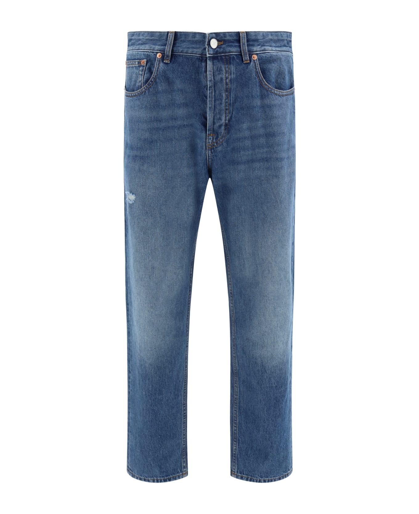 DENIM PANTS WITH EMBOSSED VLOGO SIGNATURE