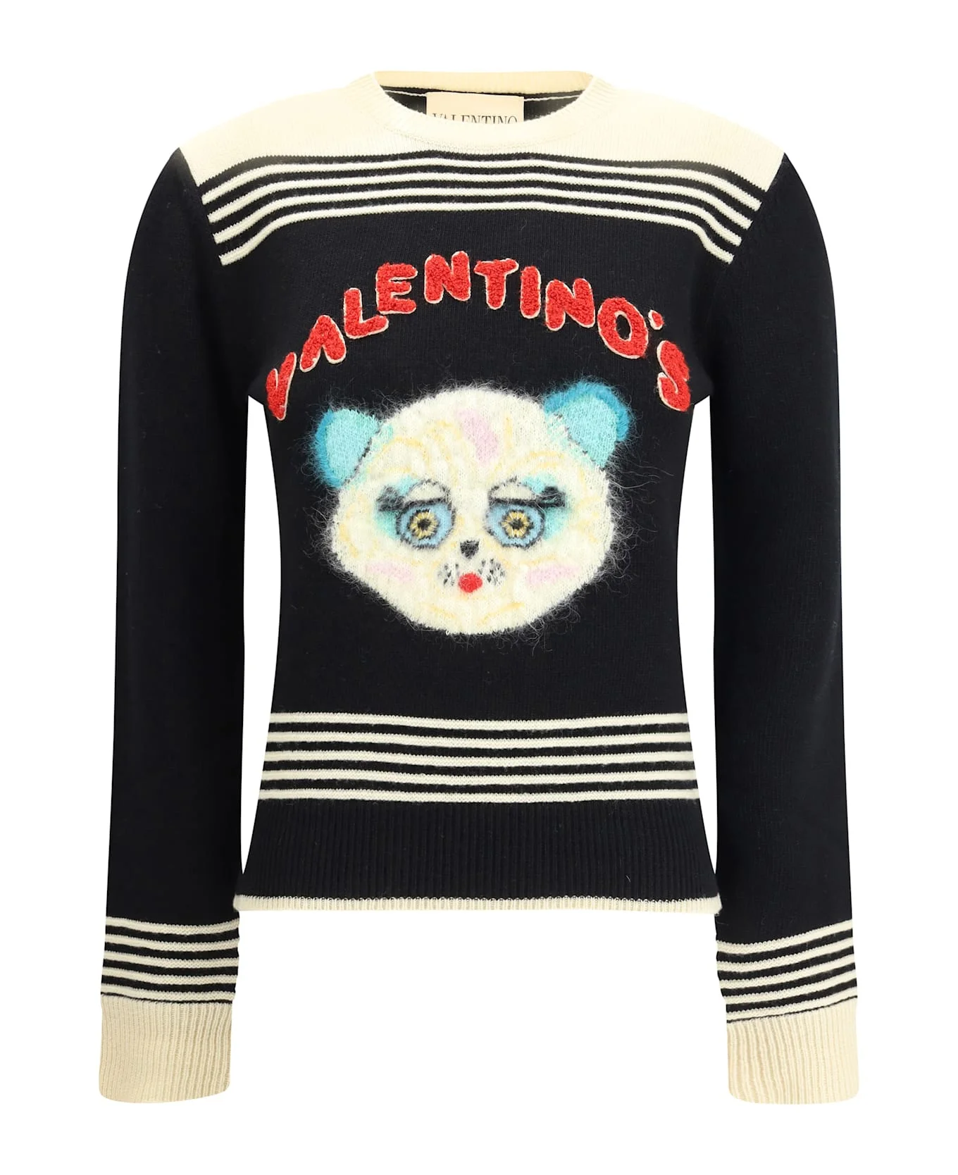 cat-embroidered striped sweater