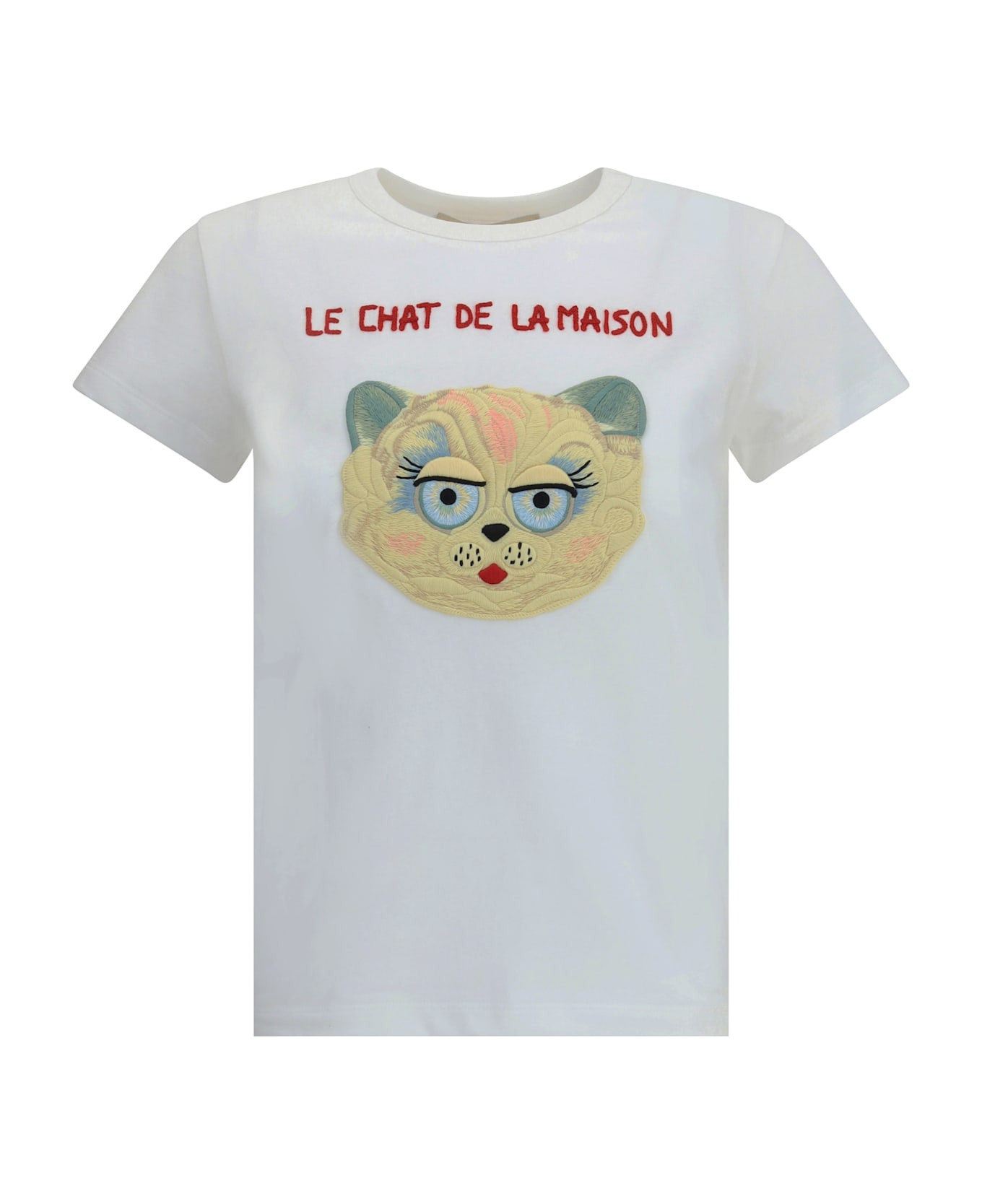The le chat de la maison t-shirt by valentino is an essential piece with a distinctive touch. crafted with a ribbed crew neck, it is embellished with the iconic chat de la maison embroidery sewn onto the front, for a casual yet sophisticated look. Composition: 100% % Cotton Made in: Italy Color: Ivory Model number: BMG25J9LDA03
