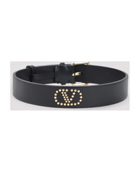 Valentino Garavani Black Leather Necklace. Black leather, golden-toned hardware, round studs Vlogo on the front, belt loops, back buckle fastening, adjustable fit. Made in: Italy Color: No Nero Size and fit: - H: 2cm Model number: 6W2J0Y53SYI0NO