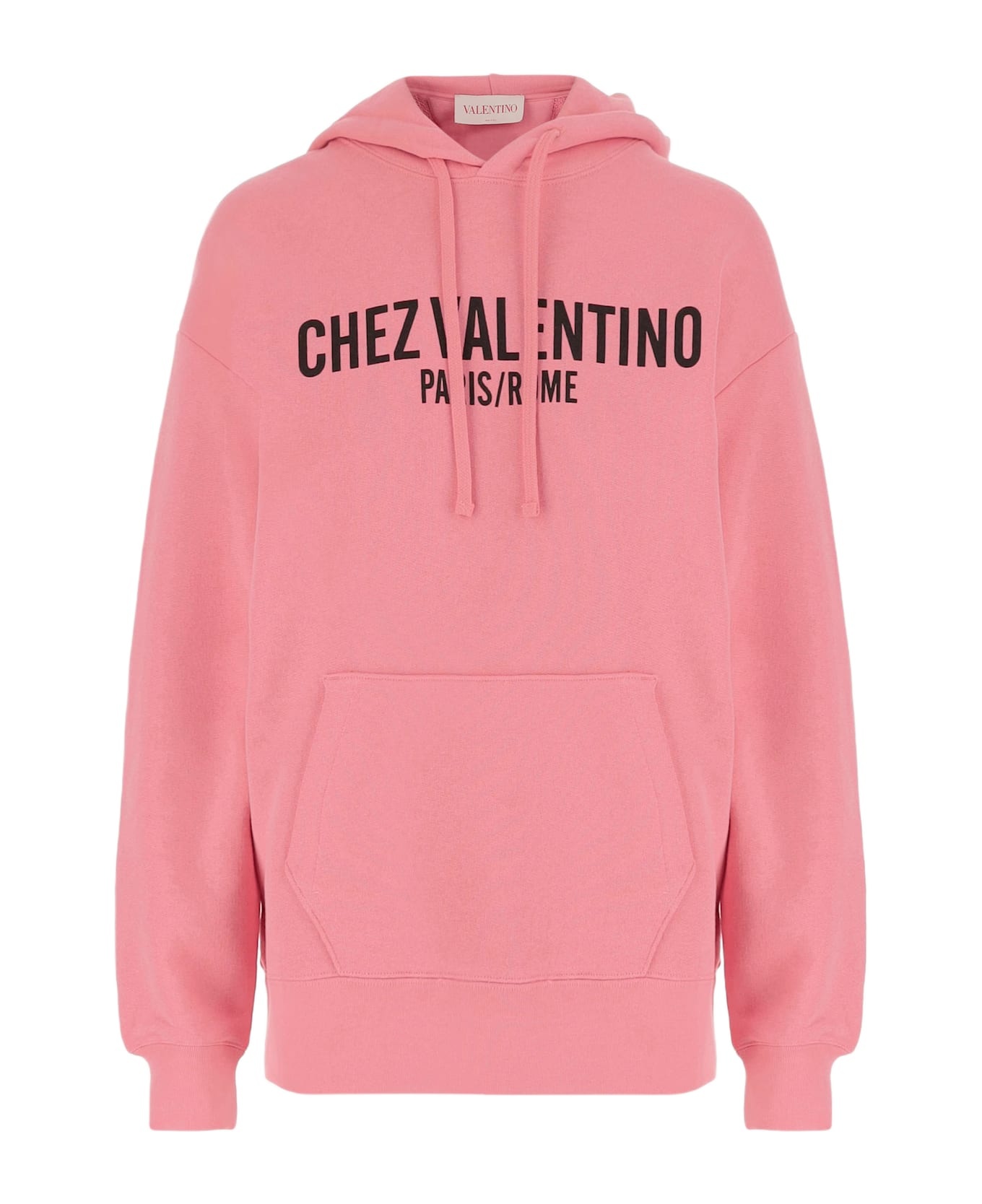 COTTON SWEATSHIRT WITH HOOD AND CHEZ VALENTINO PRINT