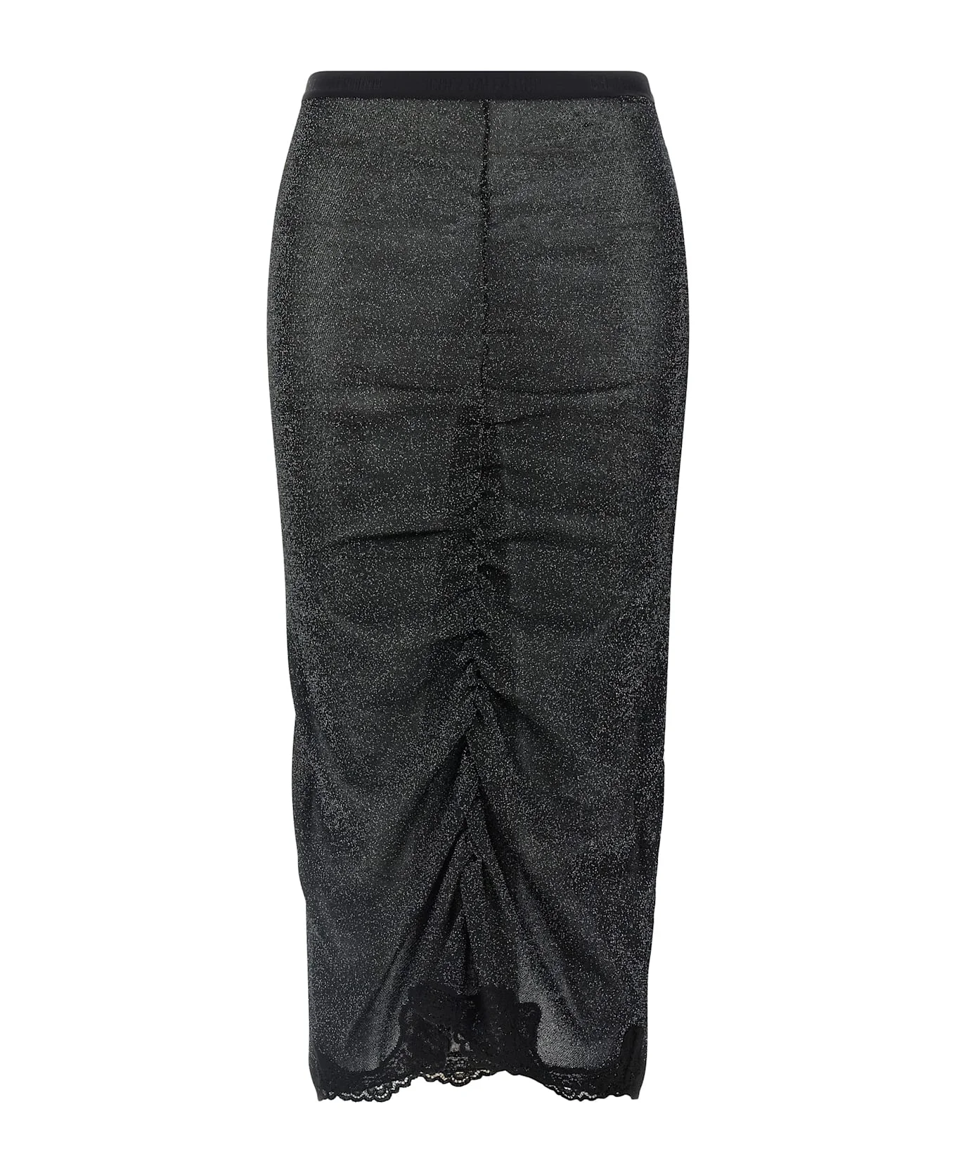 Lurex knit midi skirt, central front curl, lace insert on the hem, elastic waistband with embossed logo. Composition: 81% viscose 19% metallised fiber Made in: Italy Color: Black Size and fit: - True to size fit Model number: B0KG05VA8SNUD