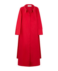This garment is a vibrant red dress, characterized by a wide and flowing silhouette. it features long sleeves and a distinctive collar, adding an elegant and refined touch. the length of the garment reaches down to the lower part of the legs, making it suitable for various occasions. the fabric feels soft and lightweight, ensuring comfort and wearability. perfect to pair with neutral accessories for a complete and classy look. 100% cotton Composition: 100% % Cotton Made in: Italy Color: red Model number: 2B0VA3T15DN157