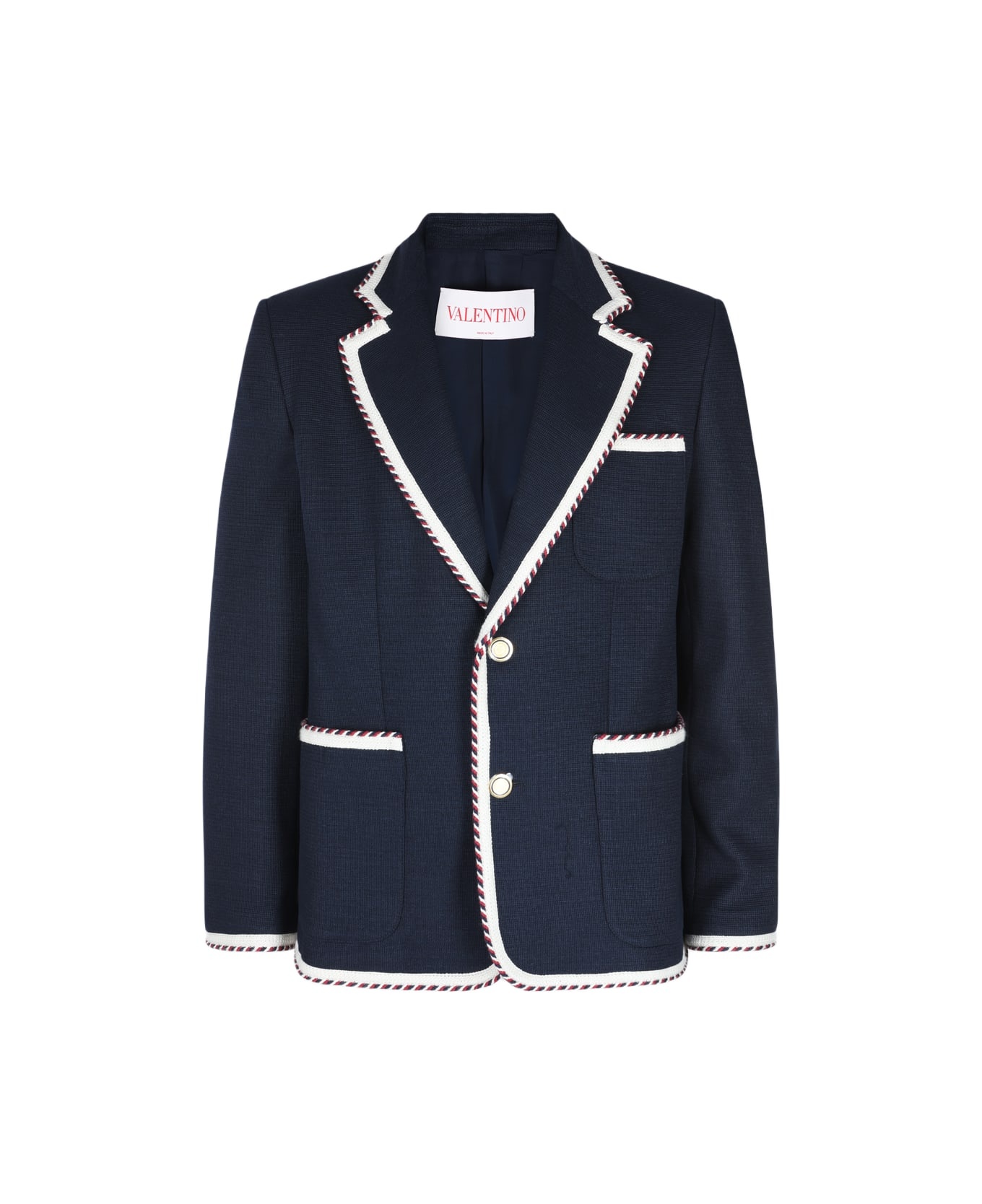 SINGLE-BREASTED JERSEY COTTON JACKET WITH TORCHON PIPING