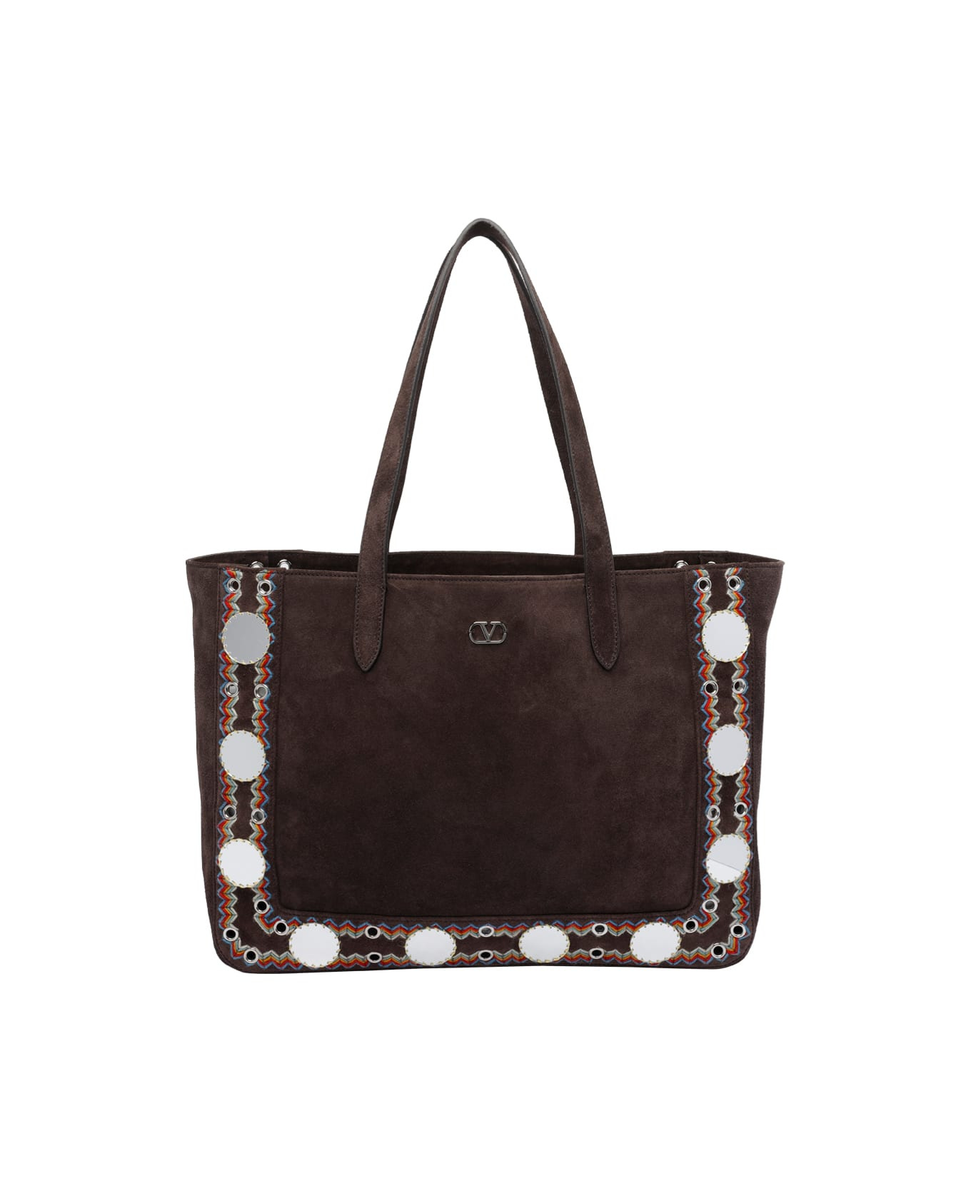 Valentino Garavani brown Nellcote tote bag, 2 shoulder straps, inner removable zippedpochette, frontal mini logo, suede model Composition: 100% Calf Leather Made in: Italy Color: Brown Size and fit: - 29,5x44x12 cm Model number: B0R79KJKRCB