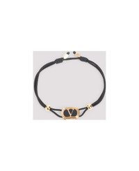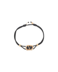 Valentino Garavani Black Ovalette Bracelet. Front black brass detail, front gold-tone signature V logo, side gold-tone brass pearl details, black polyester strap, adjustable design, back gold-tone ovalette logoed details. Made in: Italy Color: Cmp Nero Oro Nero Model number: 7Y2J0AI9GBQCMP