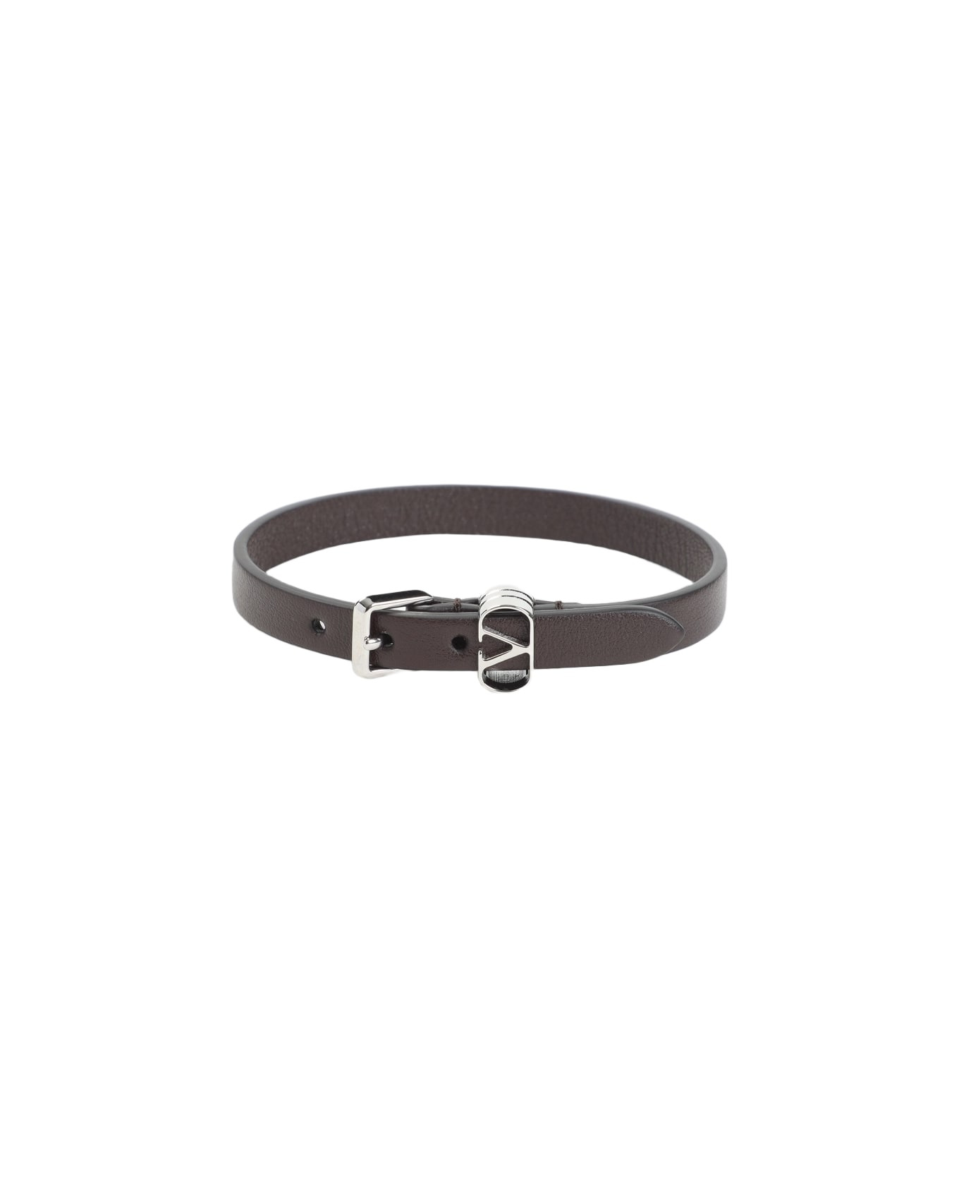 Valentino Garavani Oak Brown Calf Leather Ovalette Bracelet. Pure oak brown calf leather bracelet, adjustable design, front silver-tone buckle, front silver-tone belt loop with signature V logo. Made in: Italy Color: Brown Model number: YJ0AH7FXJREL