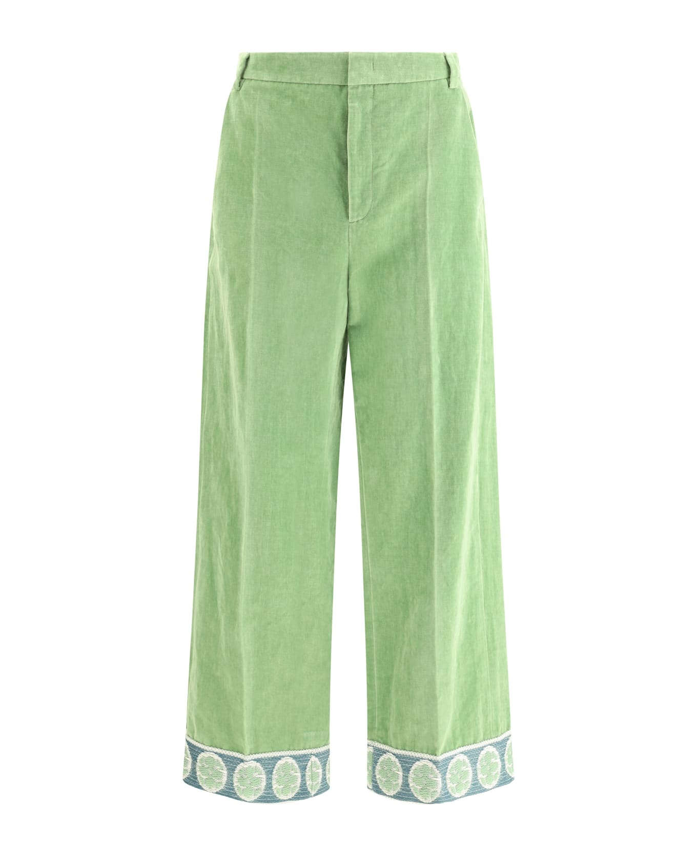 WASHED COTTON-LINEN VELVET PANTS WITH JACQUARD HEMS