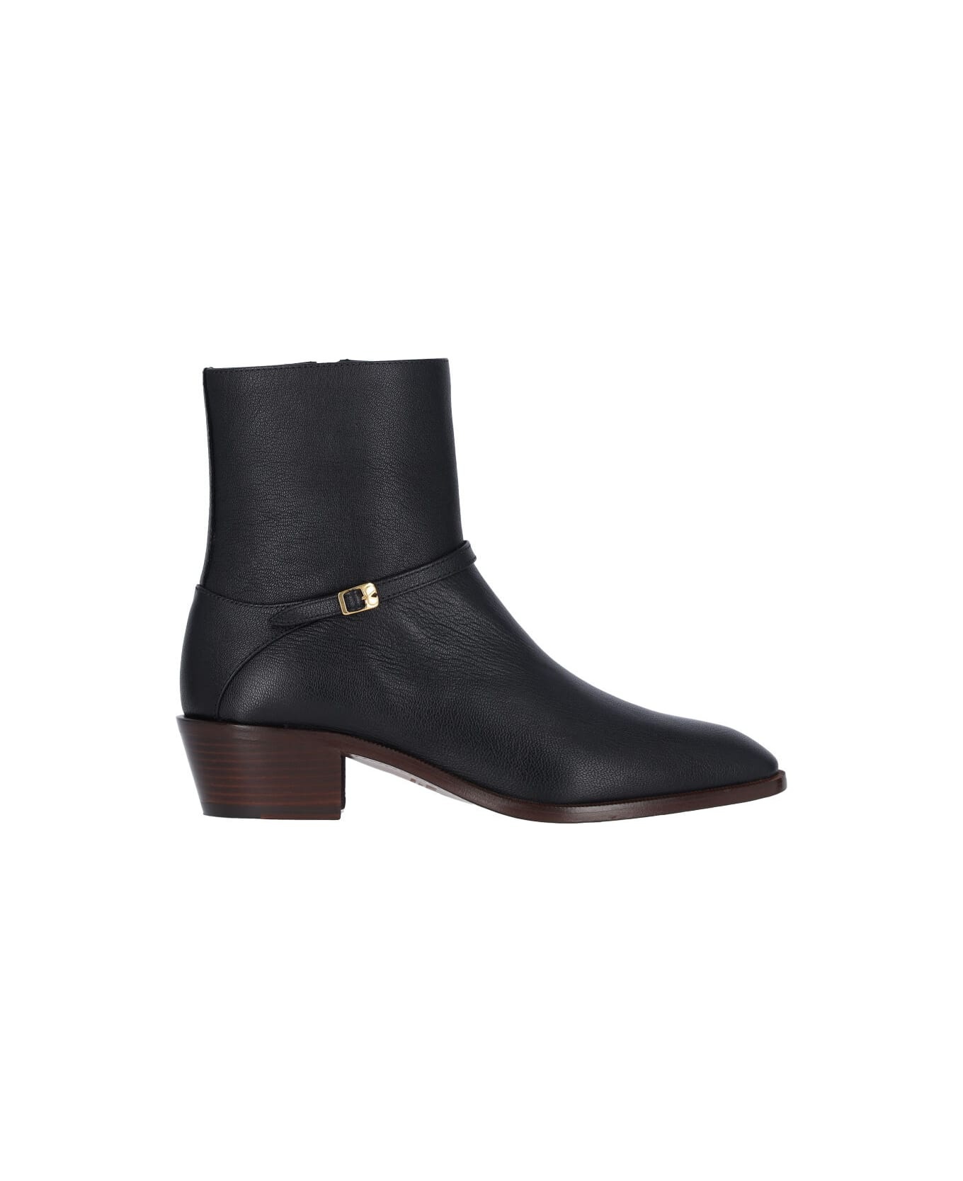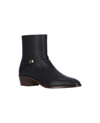 Valentino "Pat" kid ankle boots in black leather with pointed toe, adjustable top strap, gold metal "Vlogo" buckle detail, side zip closure, square heel, slip on fit, leather sole. Composition: 100% Kid Leather Made in: Italy Color: Black Model number: 6Y2S0J27DQX0NO