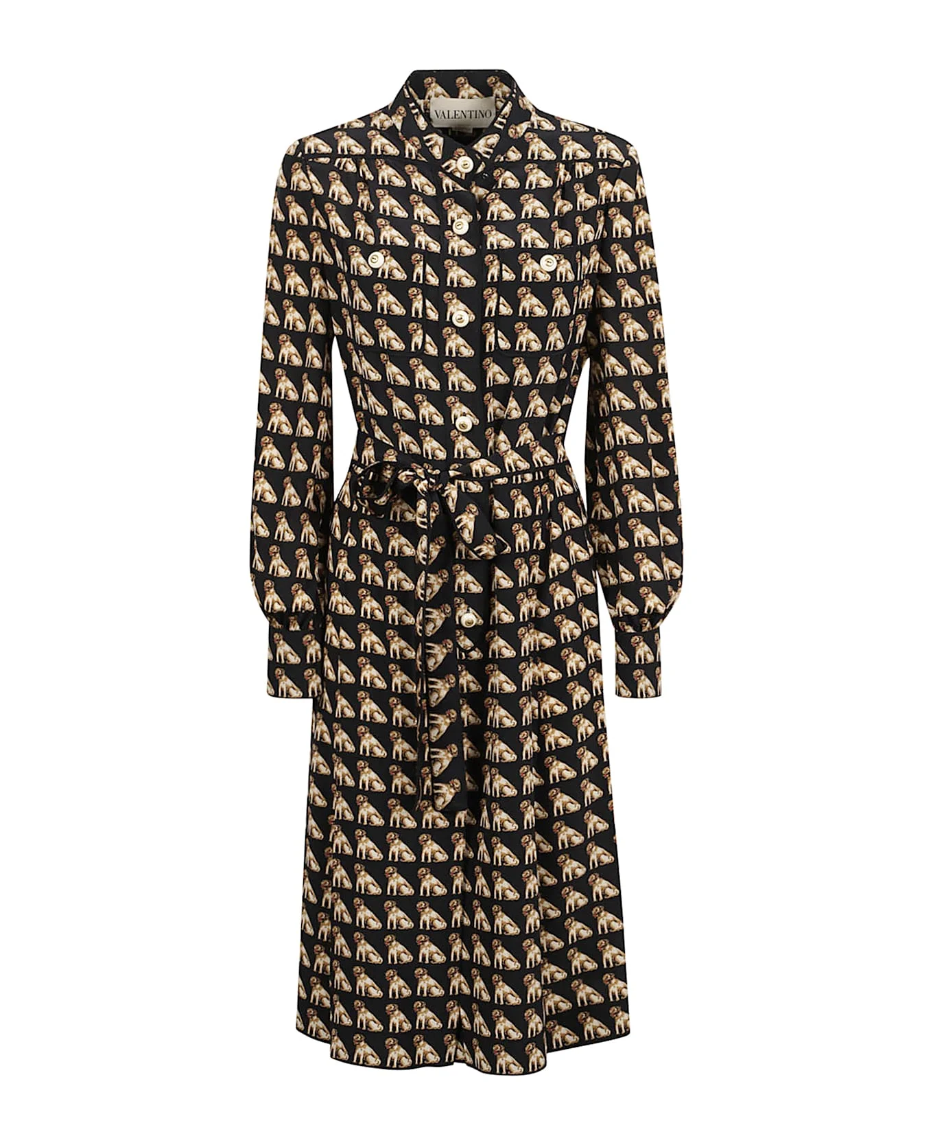 Valentino Ready To Wear black dog print belted waist long sleeves button front Composition: 100% Silk Made in: Italy Color: MultiColour Model number: 7B3VAFK19G5K92