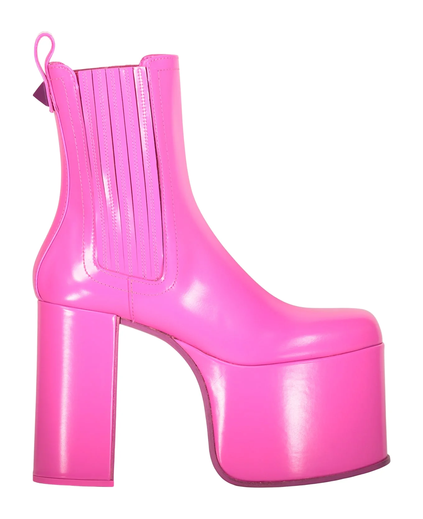 Shoes ankle boot in shiny vinyl in fuchsia pink, with a sturdy platform sole and high heel. modern design with a slim silhouette, ideal for adding a bold touch to any outfit. the closure features a zipper for easy wearability. perfect for nights out or special events. available in various sizes. 100% calf, 100% lamb Composition: 100% % Calf, 100% % Lamb Made in: Italy Color: Fuchsia Model number: 1W0S0FR0EVJUWT