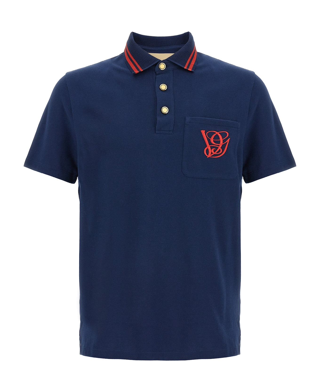Cotton piquet polo shirt with collar, gold button closure, front 'VG' embroidery, short sleeves. Composition: 100% cotton Made in: Italy Color: Blue Size and fit: - True to size fit Model number: V3MH04AB18D51