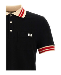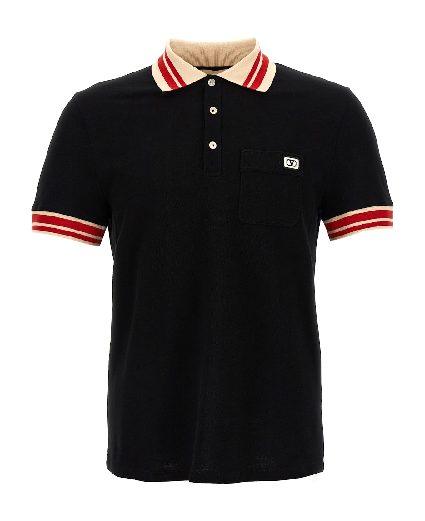Pique cotton polo shirt with contrast details, VLogo patch pocket, collar and buttons, and short sleeves. Composition: 100% cotton Made in: Italy Color: Black Size and fit: - true to size fit Model number: V3MH01KB190NO
