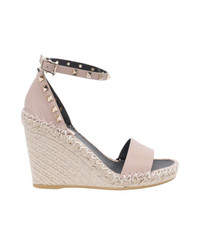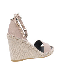 Valentino Garavani pink Rockstud Double wedge sandals, round toe, lateral buckle closure, studs allover Composition: 100% Calf Leather/rubber Sole Made in: Italy Color: Beige Size and fit: - Heel: 10,5 cm Model number: S0090VTOP98